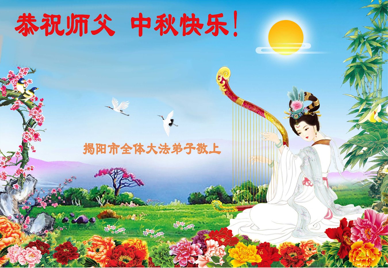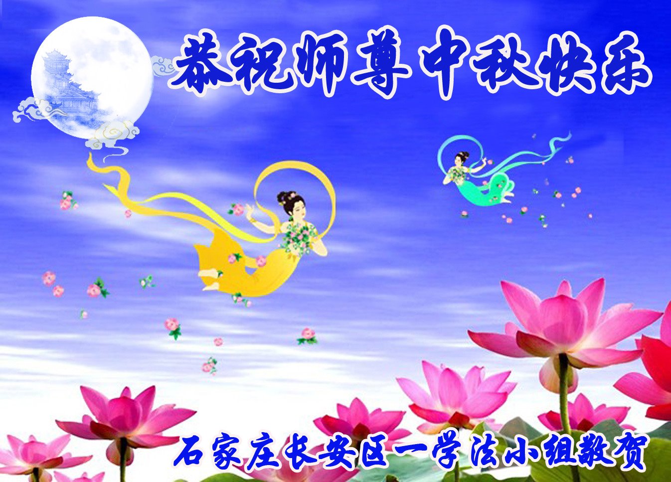 在中秋月圆之际,中国各省市地区的学法小组大法弟子、共同配合讲真相的大法弟子们恭祝慈悲伟大的师父中秋佳节好!