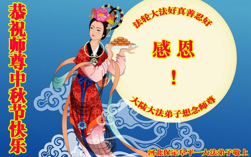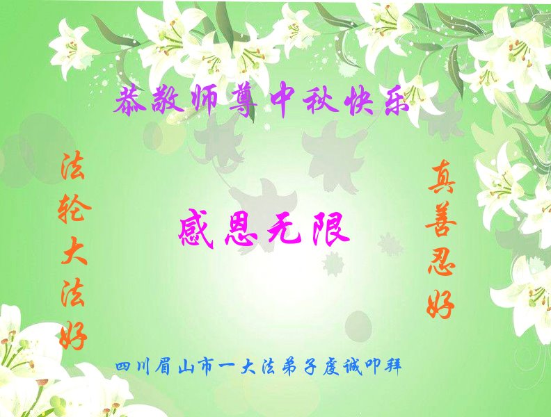 感谢您用“真、善、忍”法理指导我走过这么多年人生路,在此佳节祝您中秋快乐!