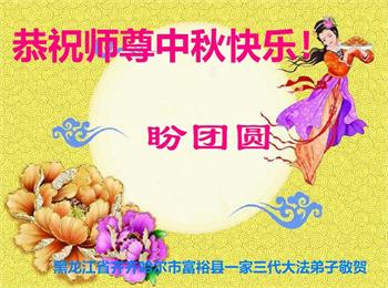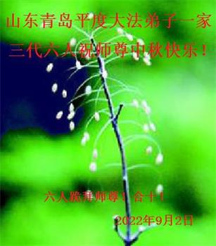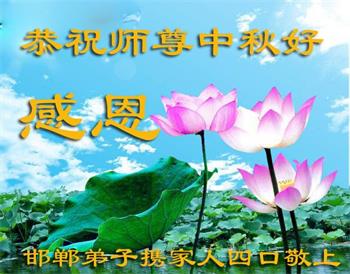 我们听到了您带领的大法弟子讲的真相,感动万分!我们看清了邪党骗人的伎俩,劝亲友们及身边人主动三退,我们得救了!遇上这高德大法,我们决定找大法弟子学大法、炼功!祝李大师中秋节快乐!