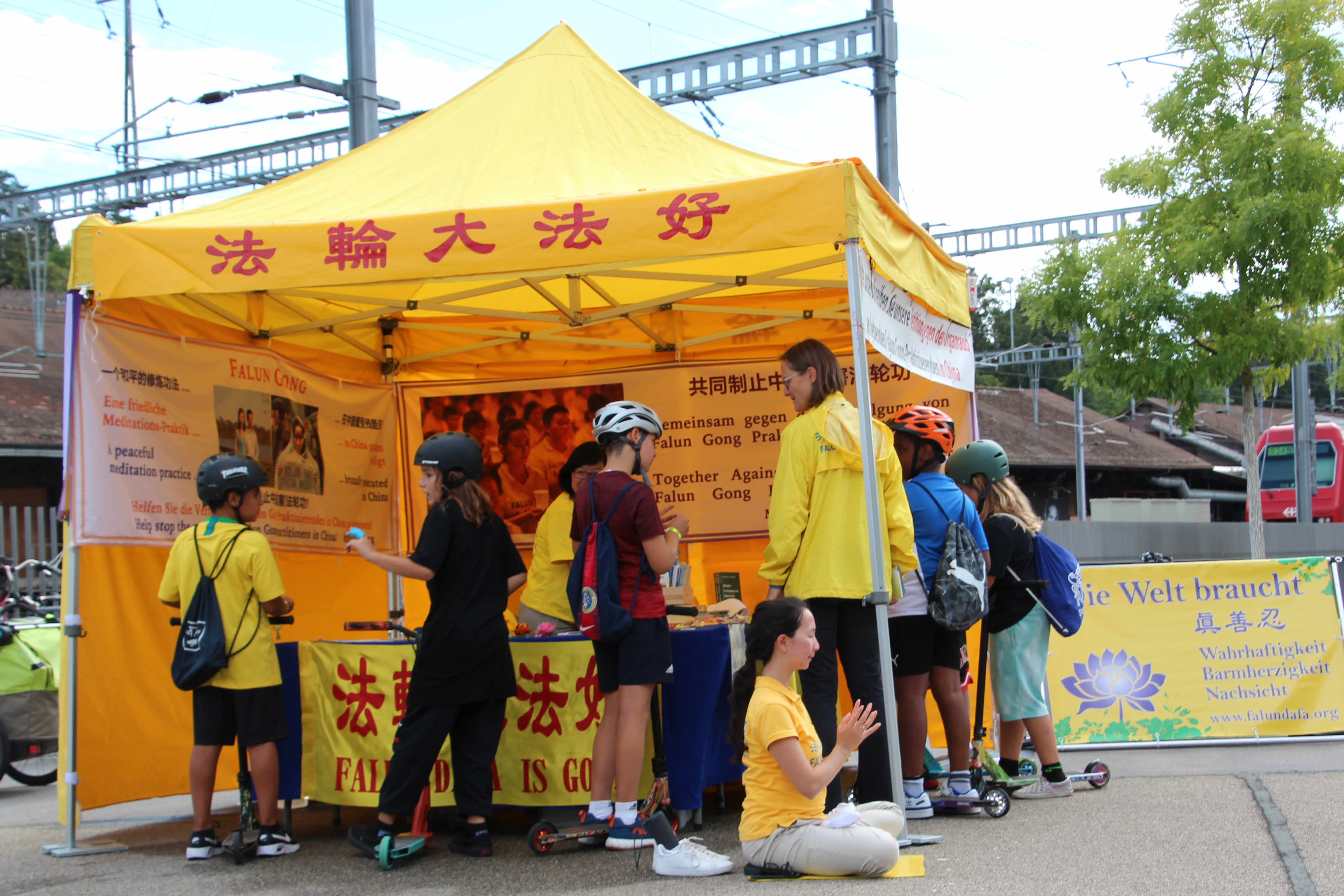 二零二二年九月三日,瑞士法轮功学员在温特图尔市(Winterthur)火车站旁的诺耶维森购物中心(Neuwiesen)摆出了介绍法轮大法的展板,向来往的路人演示功法,同时揭露中共二十三年来迫害法轮功的罪行,并向民众征集签名。很多路人欣然接过传单,打算了解更多的讯息,有的驻足倾听学员讲述真相,有的对法轮功已经有所了解,则径直签名表示支持。