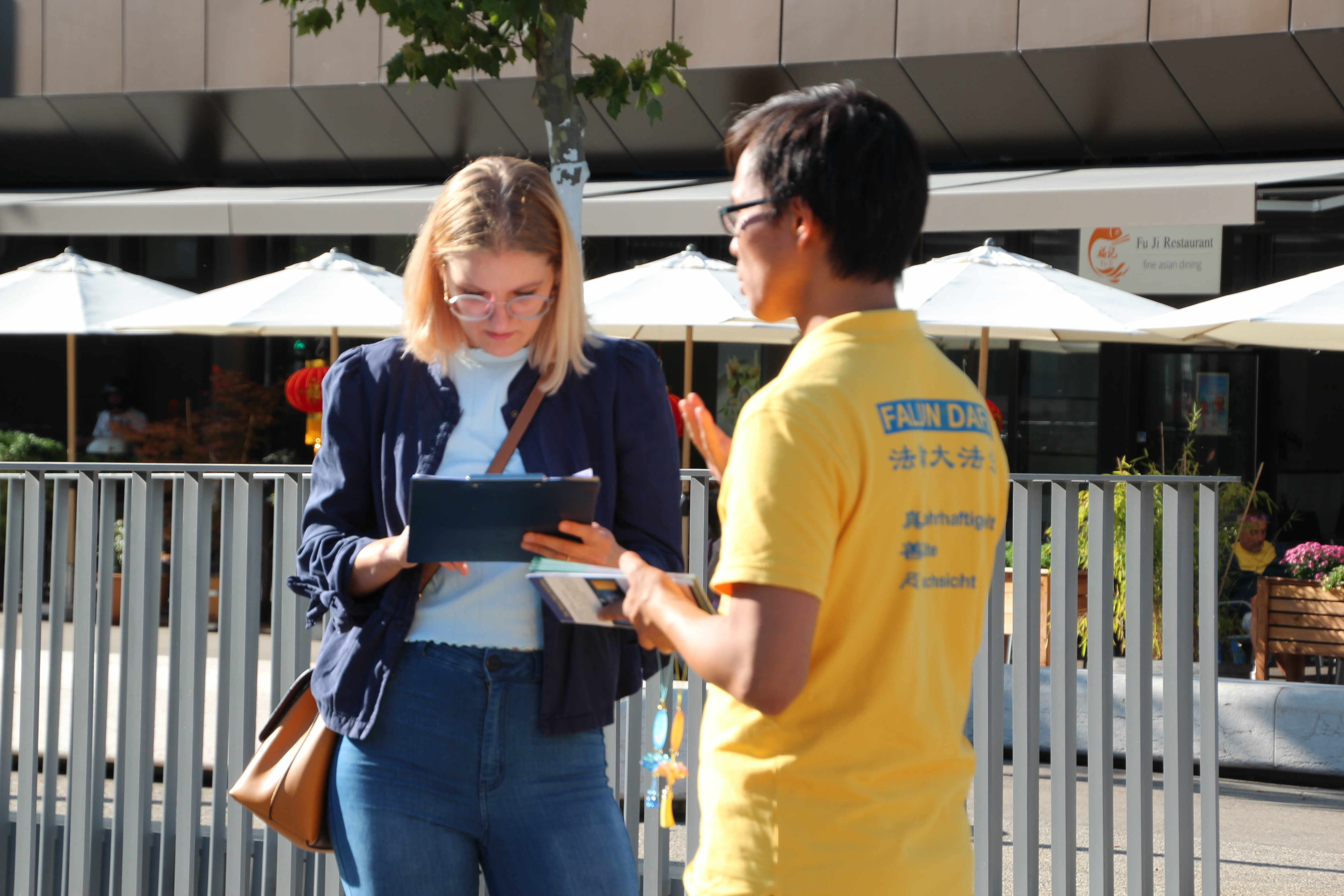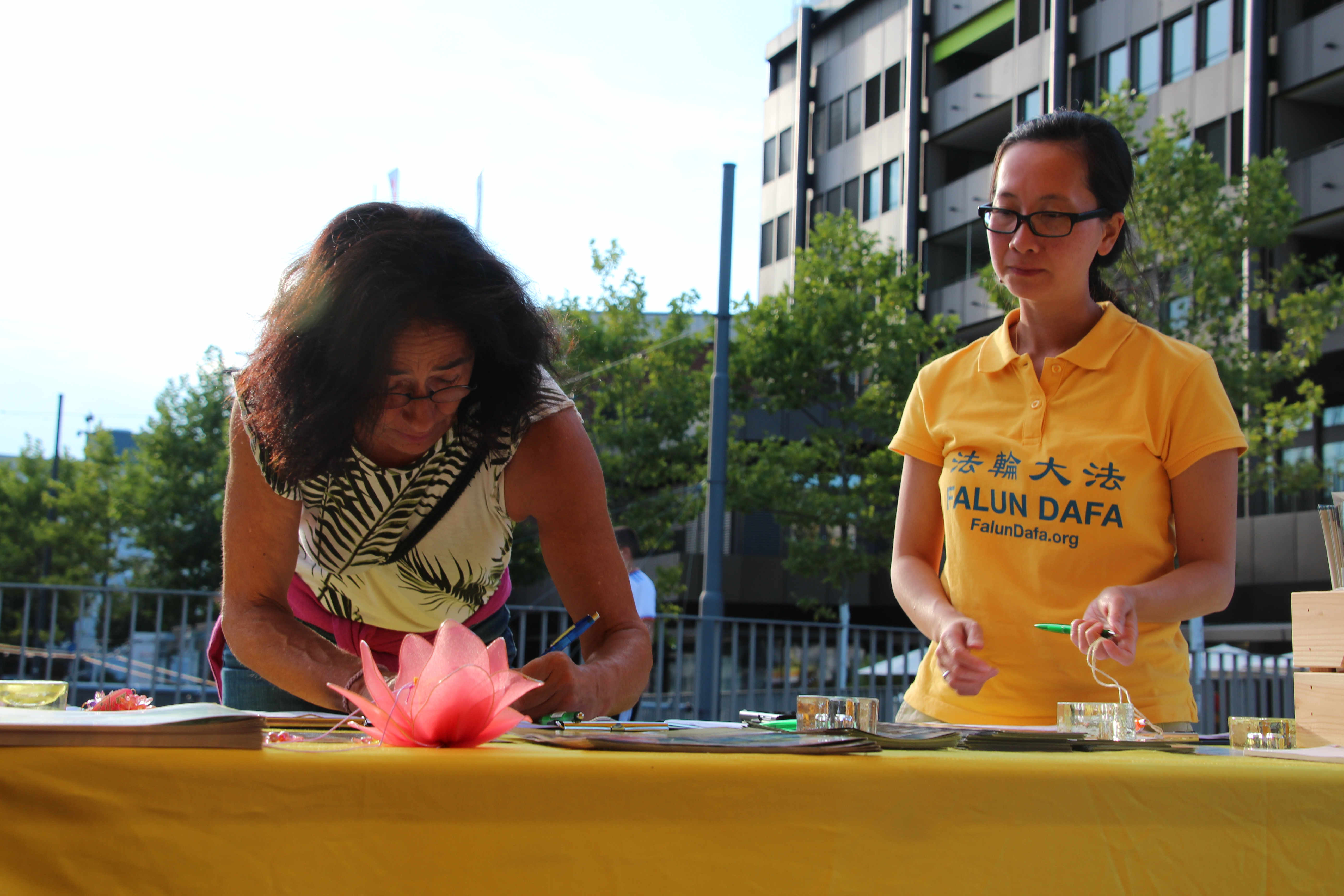 高中德语及法语老师亚历山德拉·拉赫维茨(Alexandra Lachawitz)是当天最后一个签名的,她认为:“每个人都应该可以自由的捍卫自己的观点,而不该因此遭遇危险,或被惩罚,甚至被活摘器官。”她说:“我希望能表达我的支持,希望(对制止迫害)能有所帮助。”