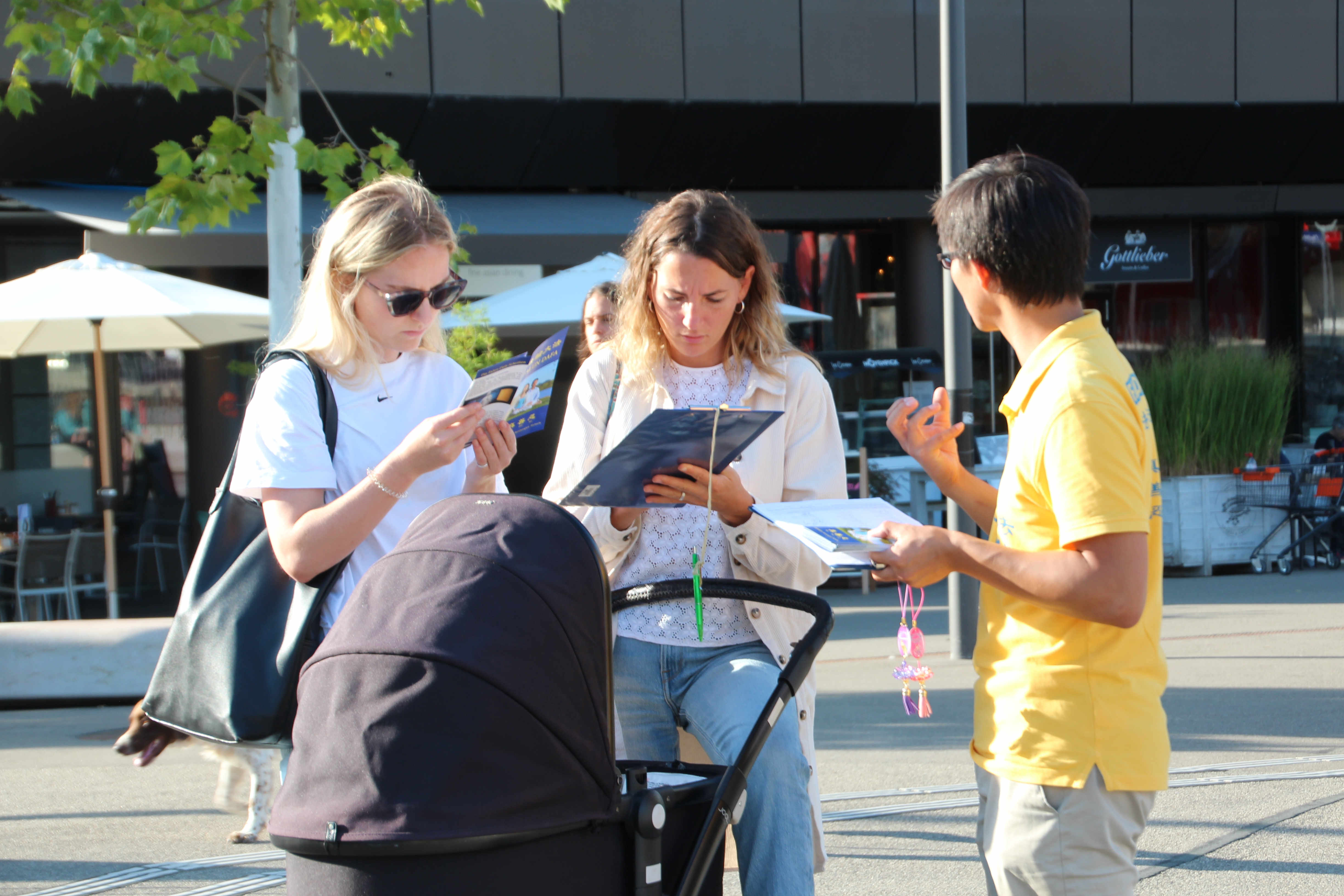 丹妮拉·菲斯特(Daniela Pfister)在一家帮助残障人士的机构工作。大概一年前她就得到过法轮功的相关讯息。因此在办完事情,不再赶时间后,她在回去的路上特意在真相台前签名制止迫害。