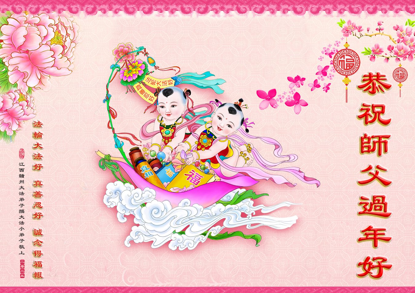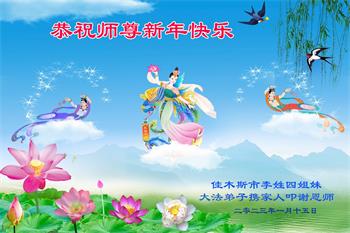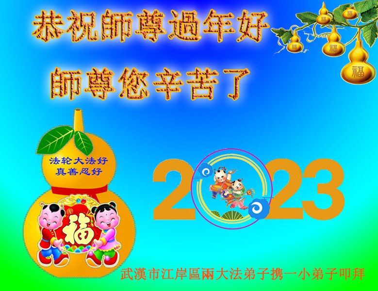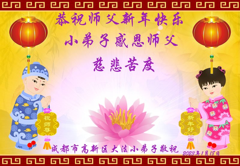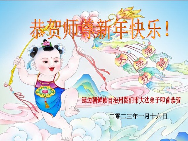 【明慧网二零二三年一月二十一日】2023年中国新年到来之际,中国大陆各民族大法弟子们恭祝李洪志师父新年好!更盼望师父早日回国和弟子们团聚。大法弟子在贺词中写道:“我们时时沐浴在佛恩浩荡中,因为有大法导航,我们不再迷茫;因为有大法指点迷津,我们充满智慧和理性;因为有大法护佑,我们幸福无比。我们时时盼着您早日回中原。”