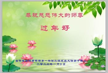以下是部份来自中国各省、自治区的回族、蒙古族、满族、锡伯族、维吾尔族、朝鲜族、壮族、布依族、苗族、彝族等各民族大法弟子敬致师尊的新年贺信。