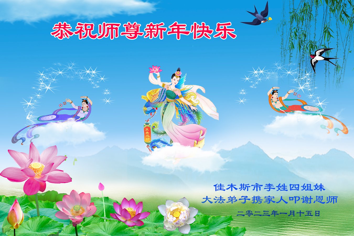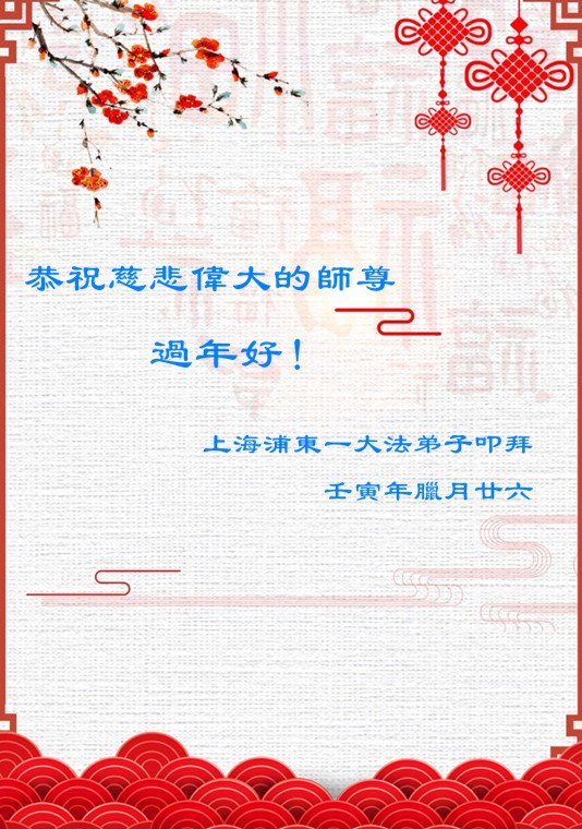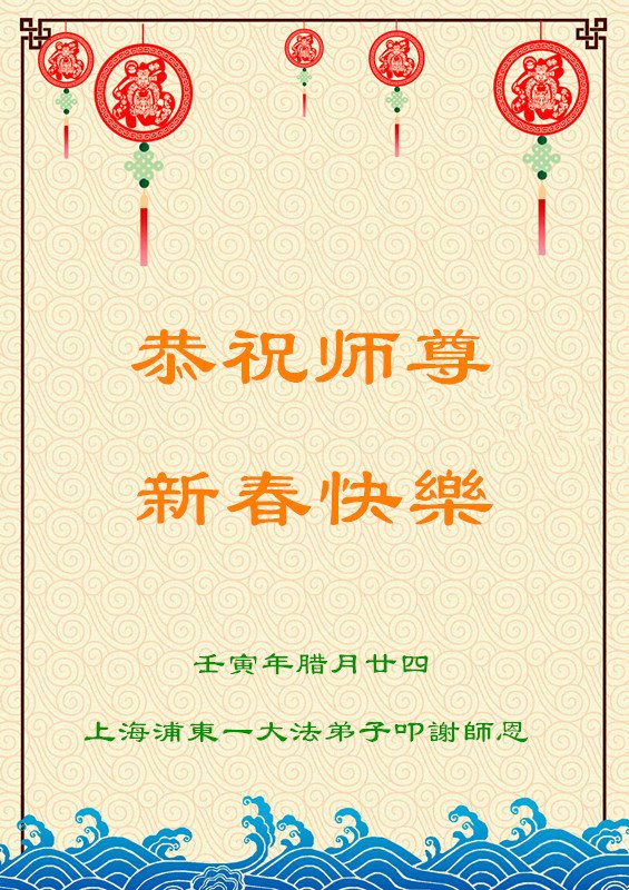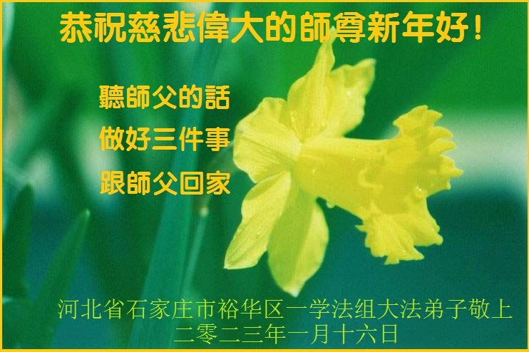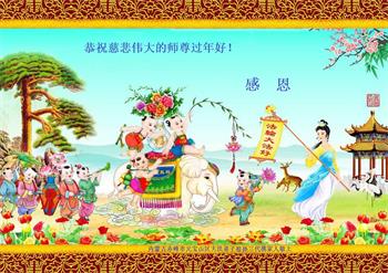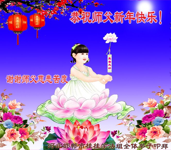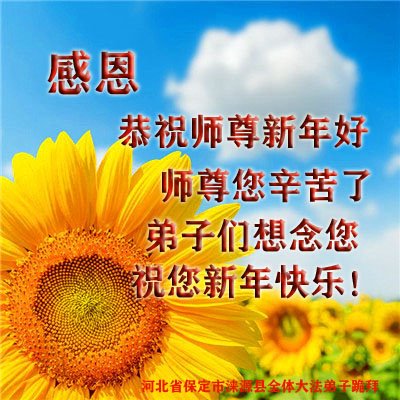 新年来临之际,弟子更加想念师尊,恭祝师尊新年快乐!同时也代表全家人以及明白真相的世人恭祝师尊新年快乐!