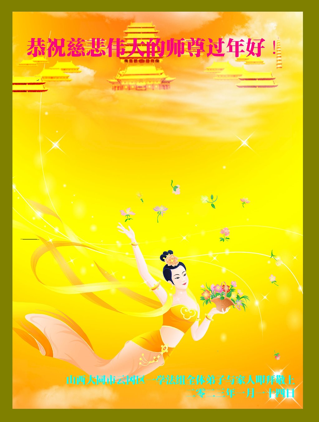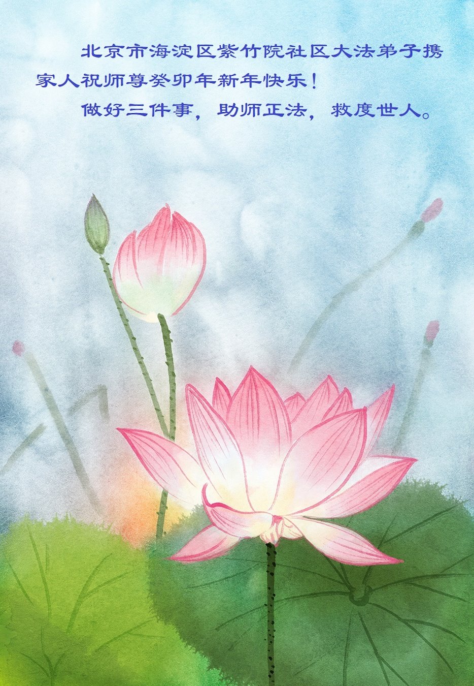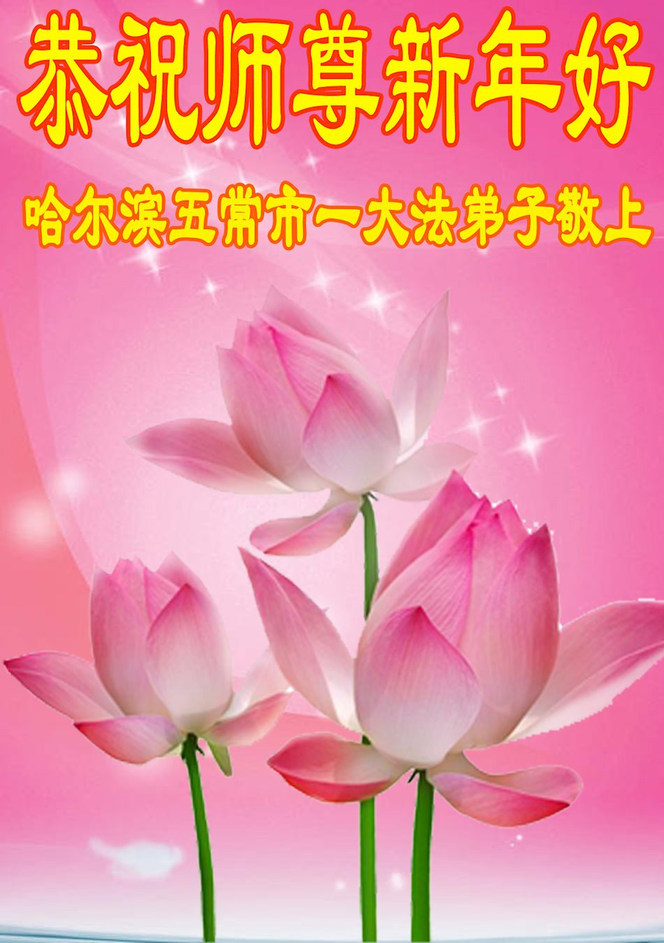 新年来临之际,弟子更加想念师尊,恭祝师尊新年快乐!同时也代表全家人以及明白真相的世人恭祝师尊新年快乐!