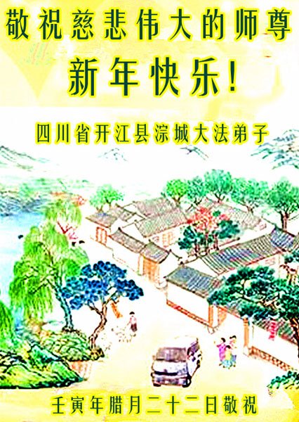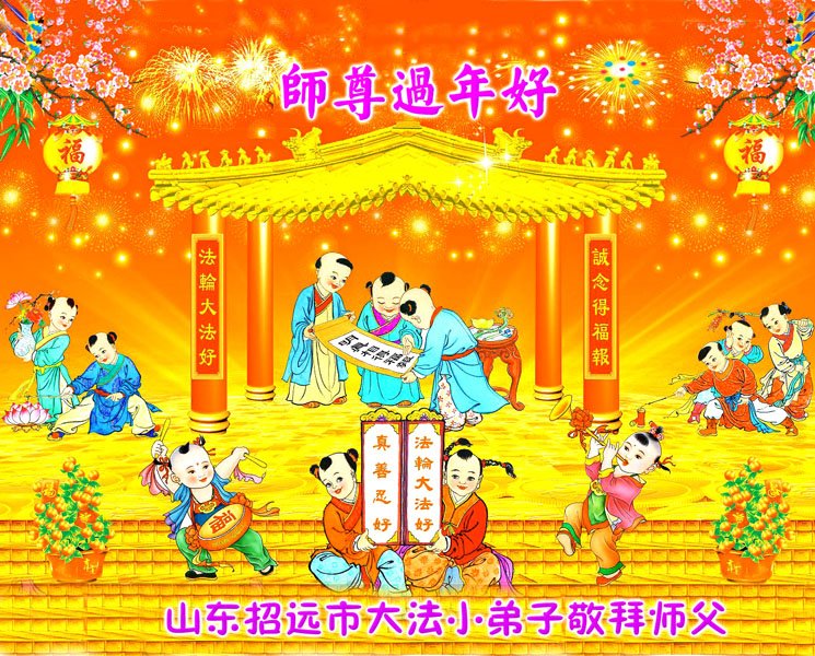 在中国传统大年到来之际,淳朴的乡村大法弟子们传来贺词,敬拜师尊过年好!