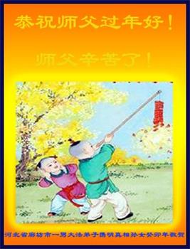 由于被邪党冤判九年徒刑,身陷囹圄,我不能亲自给师父拜年,只能转达一份心意:祝恩师新年快乐!