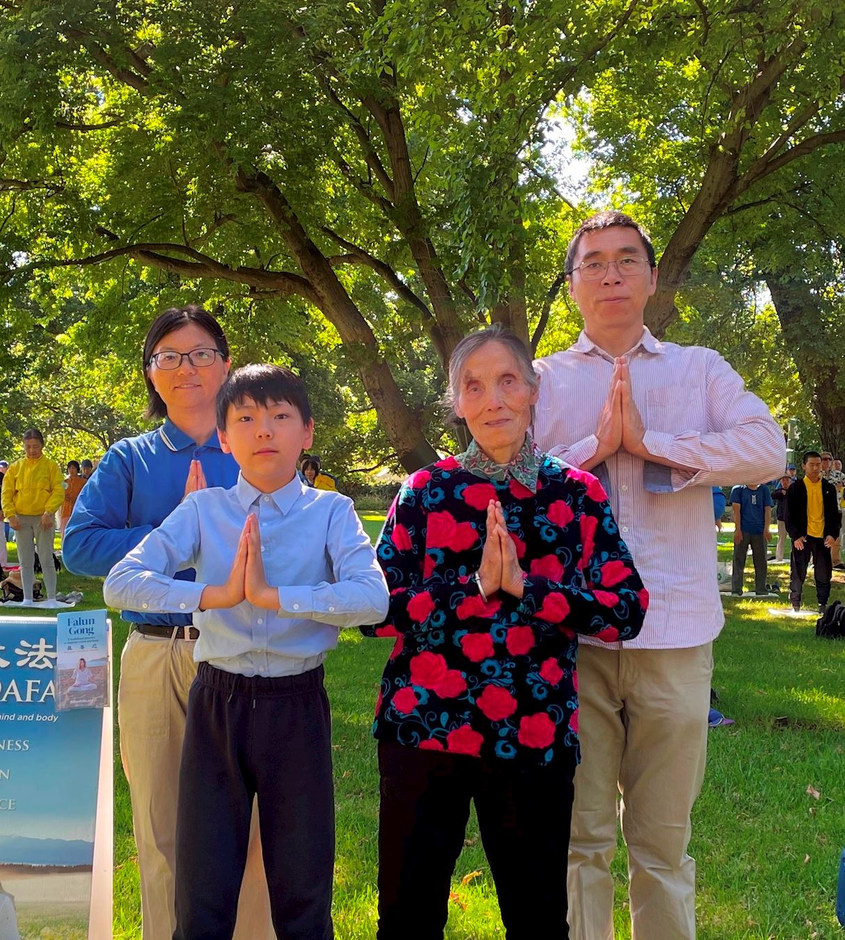 蒙古族大法弟子叩首跪拜,表达我们对师尊的感恩。合十