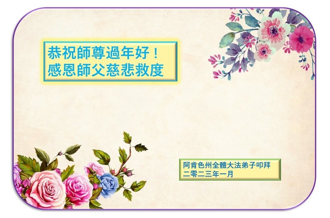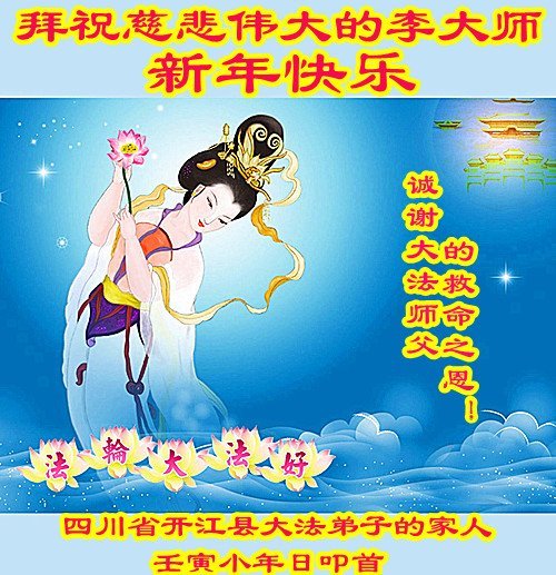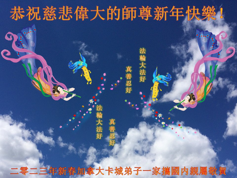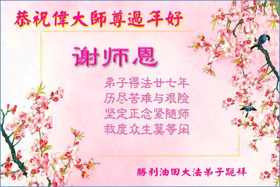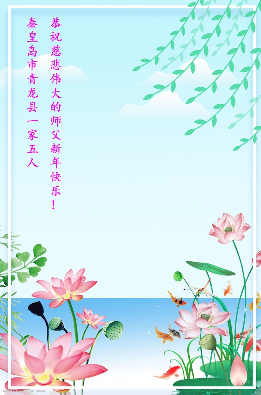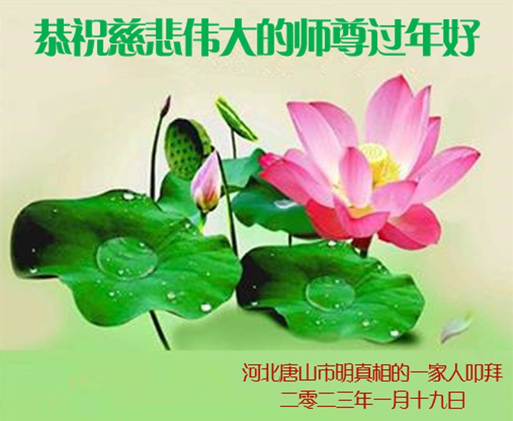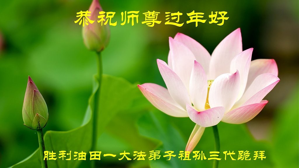 在这纷纷乱世中,我们大法弟子家人都明白真相,深知就大法师父能救我们,所以诚恳接受大法弟子的忠告:危难面前诚心敬念“法轮大法好,真善忍好”!我们都是大法受益者,在这新年到来之际!我们恭祝慈悲的法轮大法师父过年快乐!