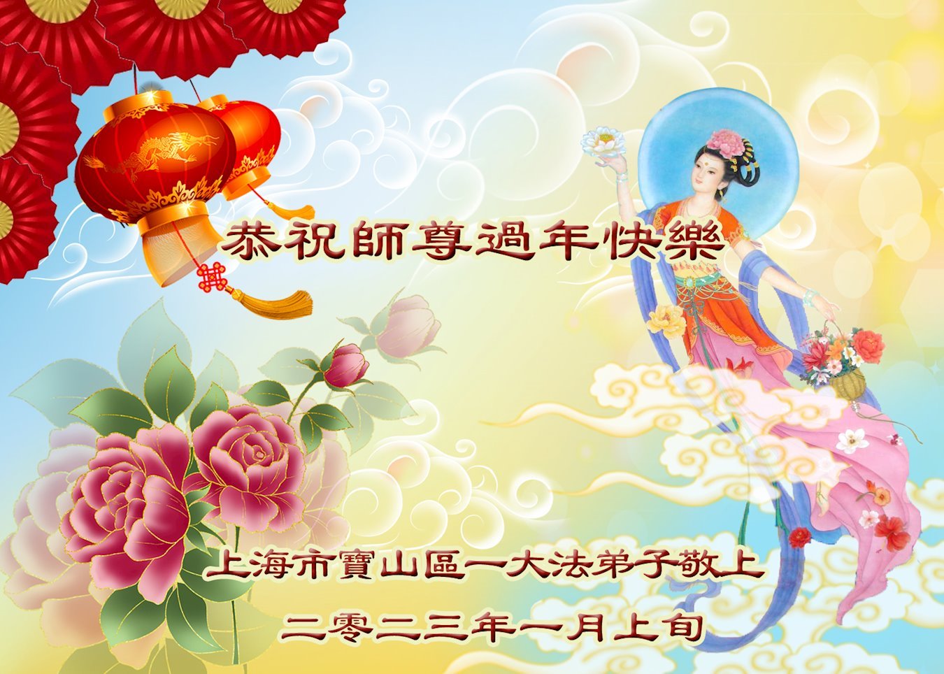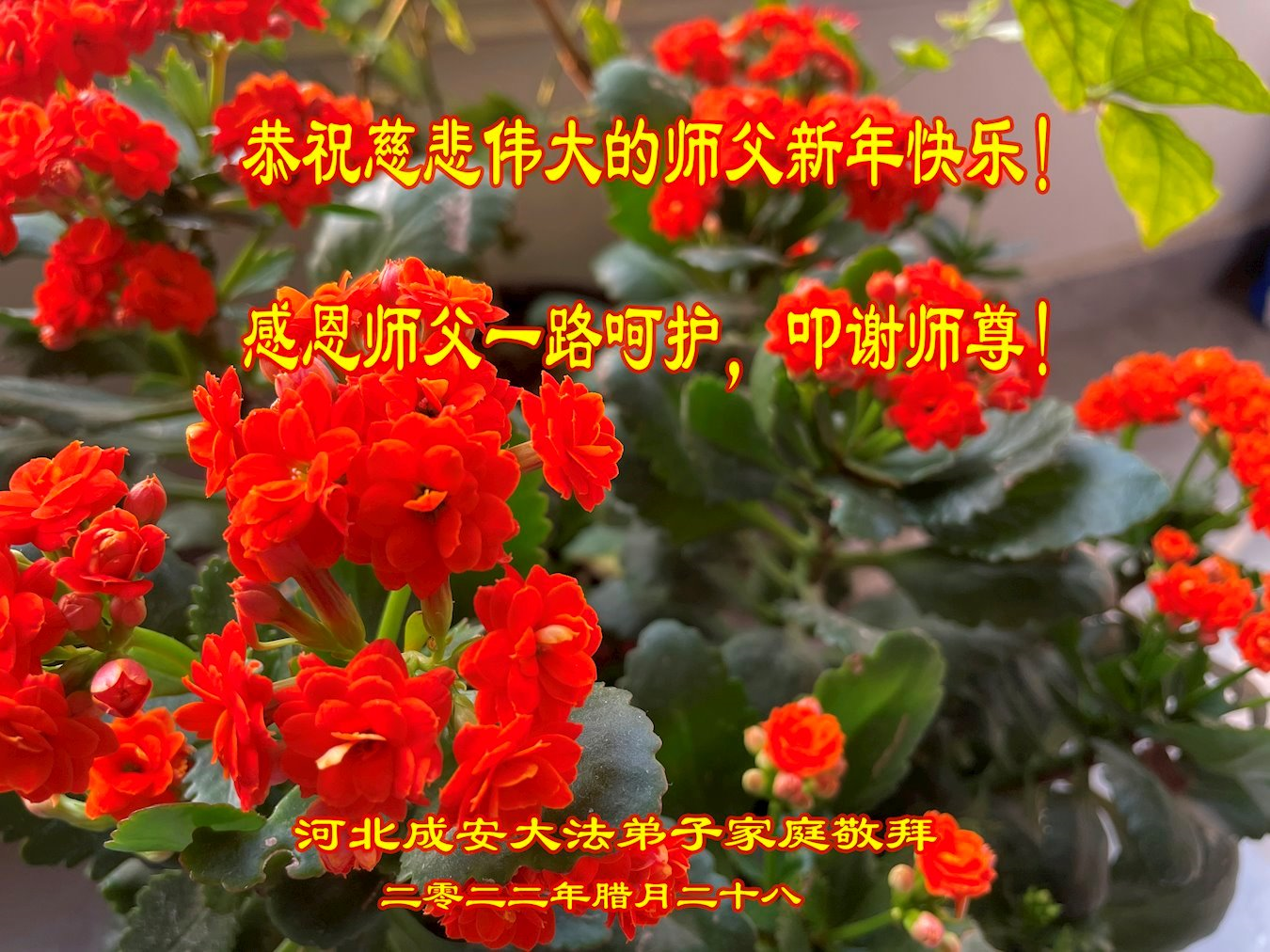 在二零二三年新年即将到来之际,弟子携家人向慈悲伟大的师尊拜年!恭祝师尊新年快乐!师尊过年好!师尊辛苦了!