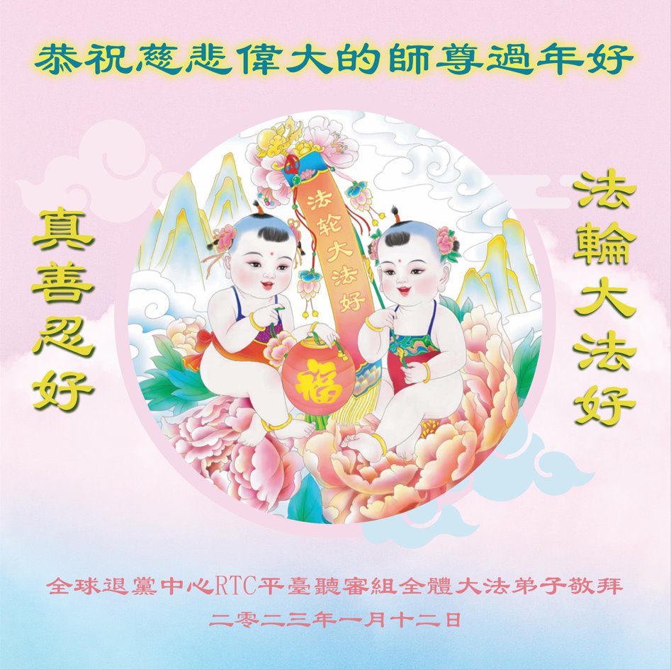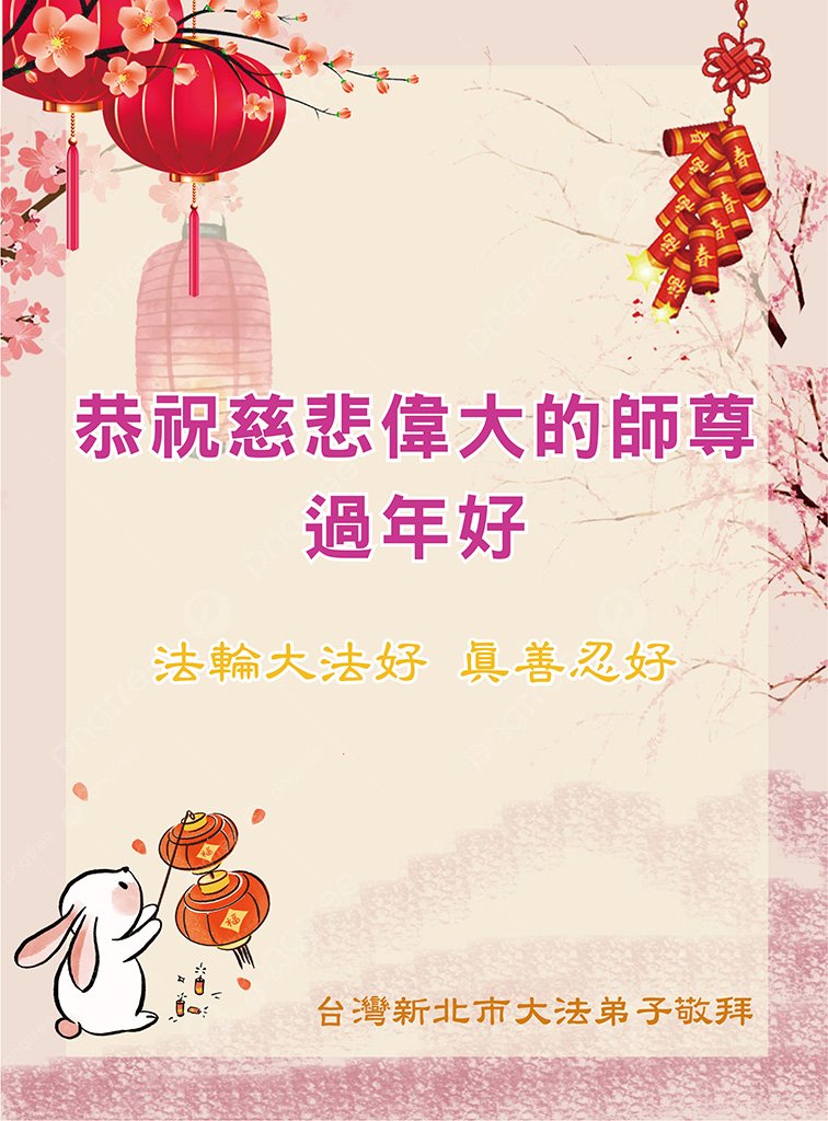 金虎辞旧岁,玉兔迎新春。沉重的2022年已逝去,回首往事,真是感慨万千。感谢大师给好人带来了幸福与光明!我们全家人在多年前就退出了中共邪党的一切邪恶组织,我们时刻牢记救命的法宝——法轮大法好!真善忍好!感谢大师的慈悲救度!大陆善良的百姓真心期盼李大师早日荣归故里。