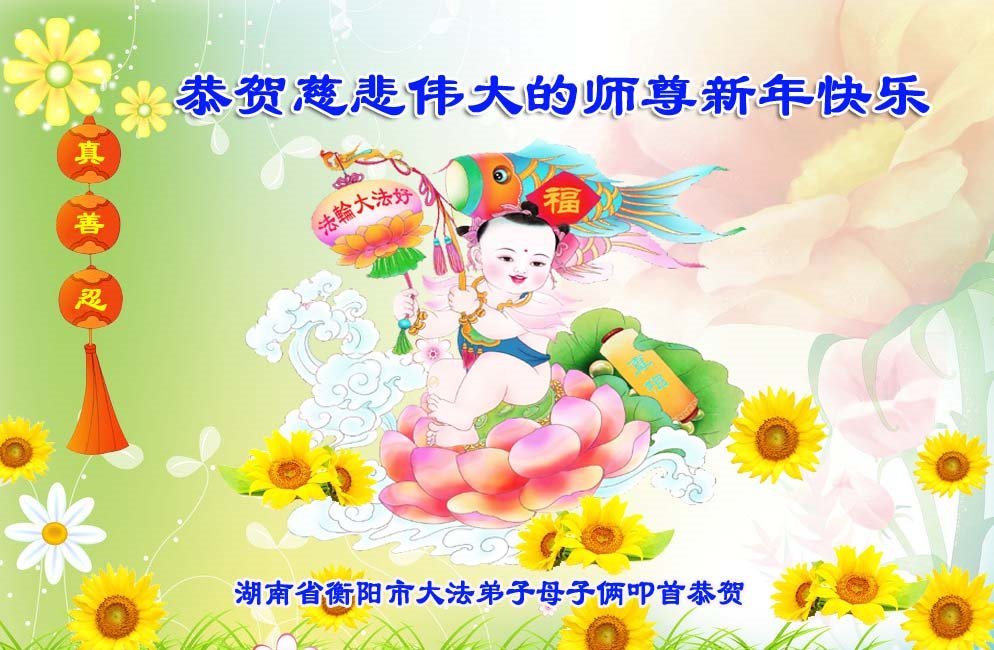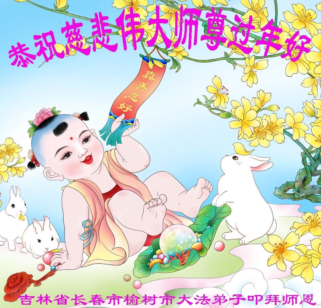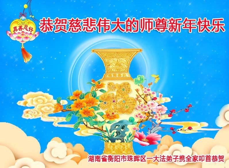 恭祝师父过年快乐!我们一家三口感恩您的佛光普照、普度众生,我们受益于大法!谢谢师父慈悲救度!