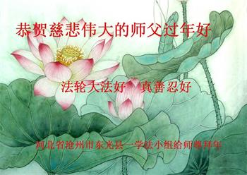 江苏无锡市一学法小组大法弟子跪拜师父!我们学法小组大法弟子的子女相信大法,相信师父,恭祝李大师新春佳节快乐!盼李大师早日回到家乡!