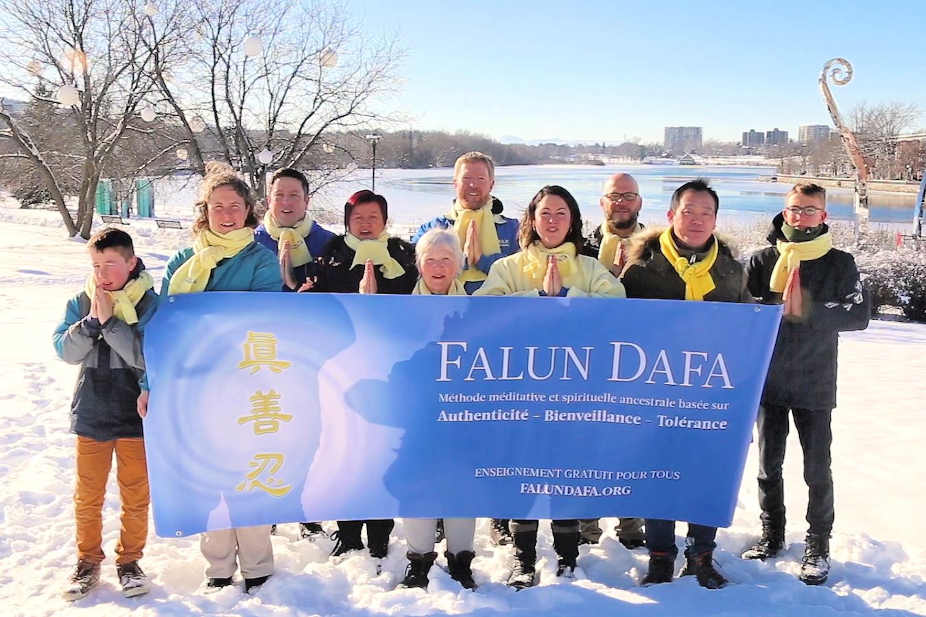 胜利油田大法弟子合十跪拜