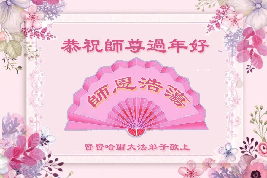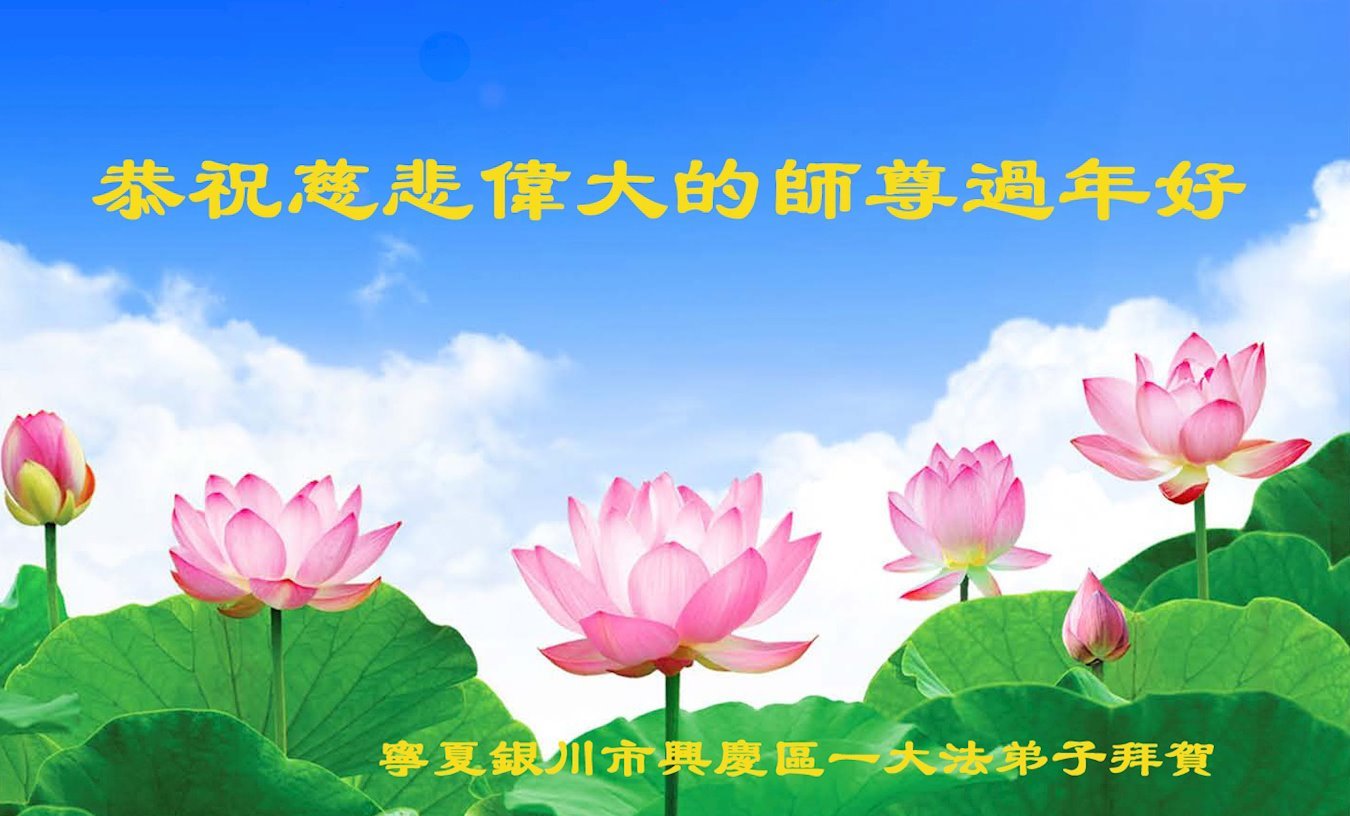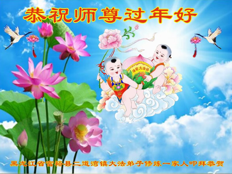 我是一九九六年得法修炼的老大法弟子,今年九十岁了,在二十多年跌跌撞撞的修炼中,虽很辛苦也很幸福,家人也见证了我一些遇难呈祥的神奇美好,都支持我修炼,四世同堂,母慈子孝,也使全家受益得福报。借此代表全家人恭祝师尊过年好!师尊辛苦了!谢谢师尊!