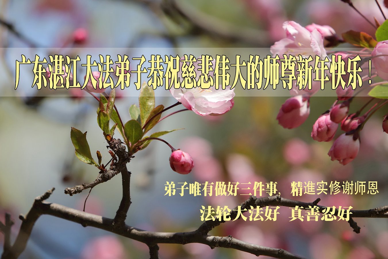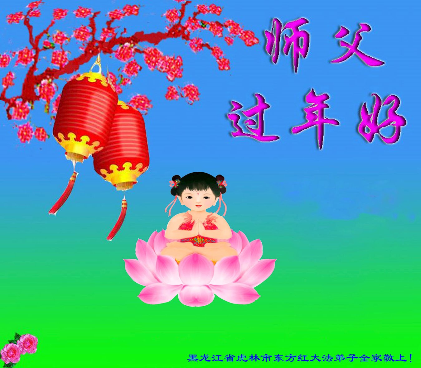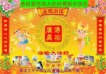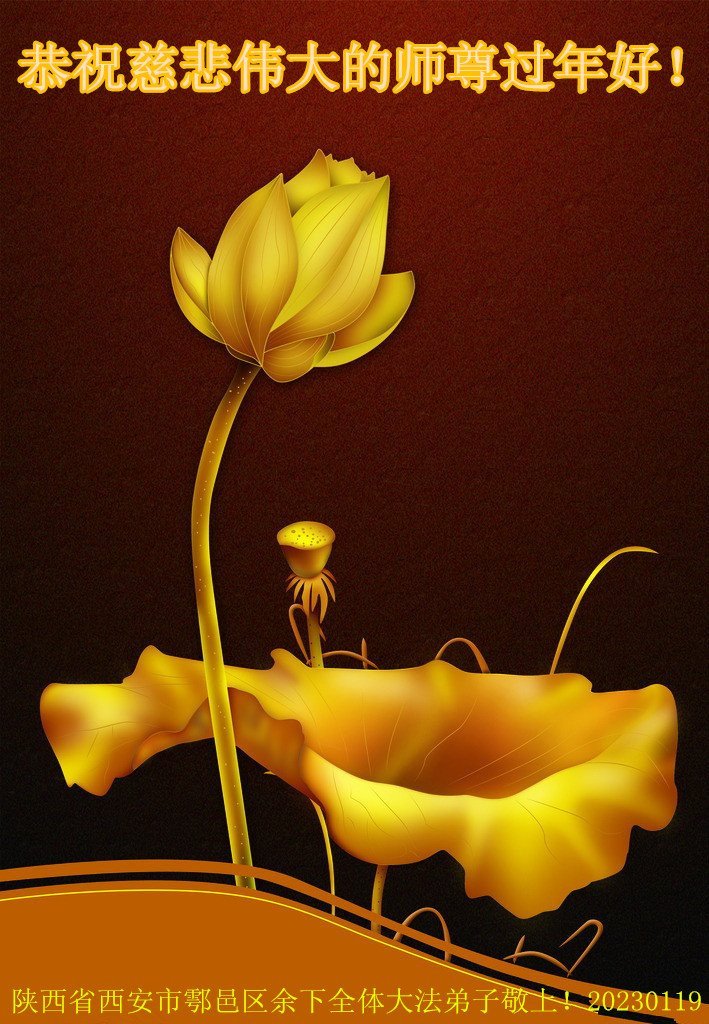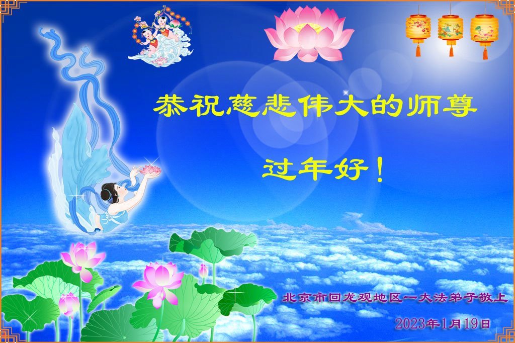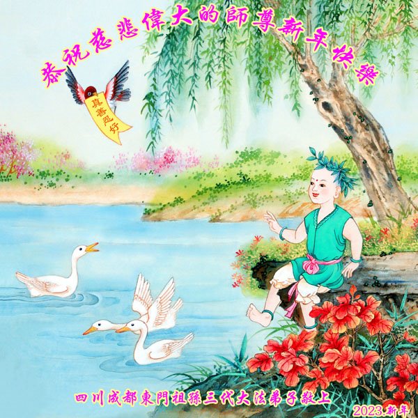 新年到来之际,我们夫妻俩老年大法弟子恭祝师父新年快乐!师父啊!弟子们想念您!助师救人是弟子们的使命不敢忘,待红魔除尽,解体恶党,法正人间迎师回中原!春回大陆师徒大团圆!
