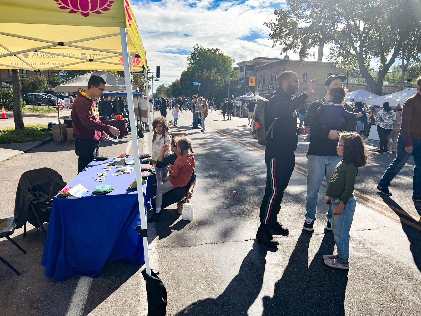 十月八日,明尼苏达法轮大法学会顺利结束了二零二三年的最后一个街道开放日活动。当天秋高气爽,街道上人潮如流,不少市民表示愿意尝试参加周日的集体炼功活动。