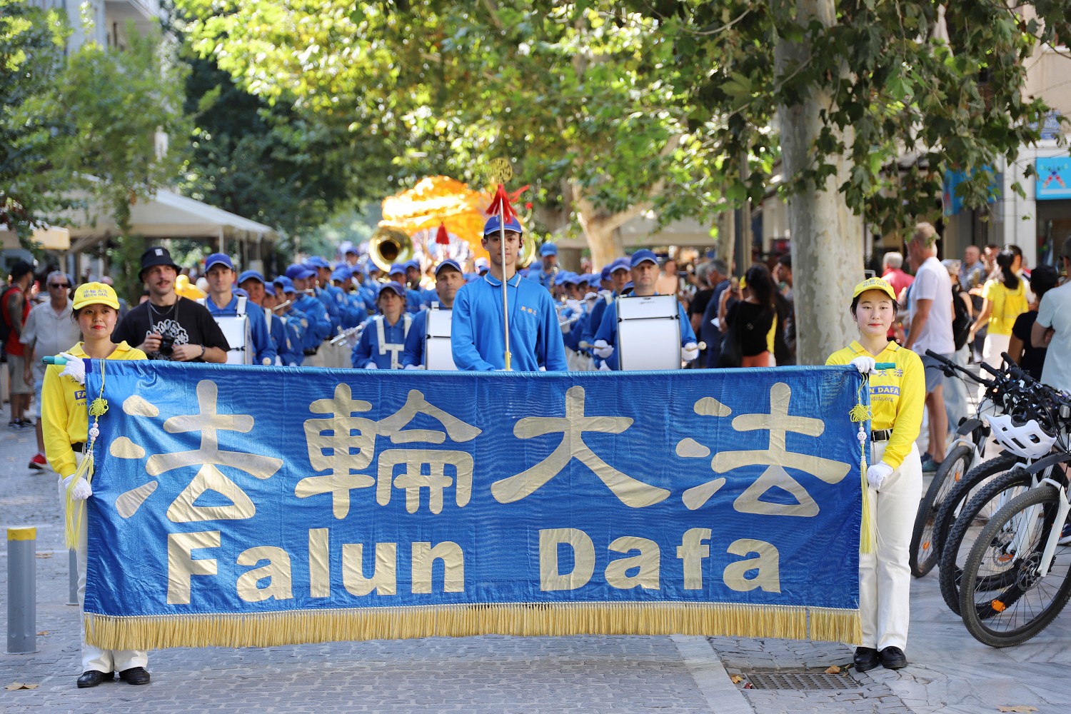 <英文版: https://en.minghui.org/html/articles/2023/10/14/212487.html>天国乐团千年古城游行 雅典人支持法轮功反迫害