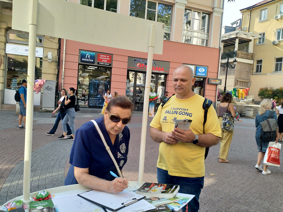 九月十六日和二十三日,法轮功学员来到普罗夫迪夫,在卡梅尼察楼梯对面繁忙的购物街上设立信息亭,传播法轮功的真相。