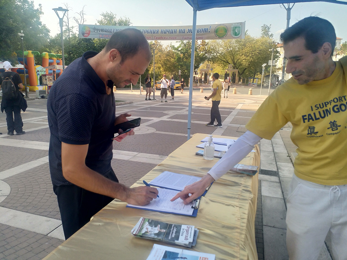 瓦西尔·斯坦科夫(Vasil Stankov)是一位YouTube视频播主,他被法轮功学员们所吸引,前来询问了解什么是法轮大法。明白真相后,他采访了一位法轮功学员,他表示,会将视频发布在自己的频道上,让观众们了解中共对法轮大法的迫害。离开前,他也在请愿书上签了自己的名字。