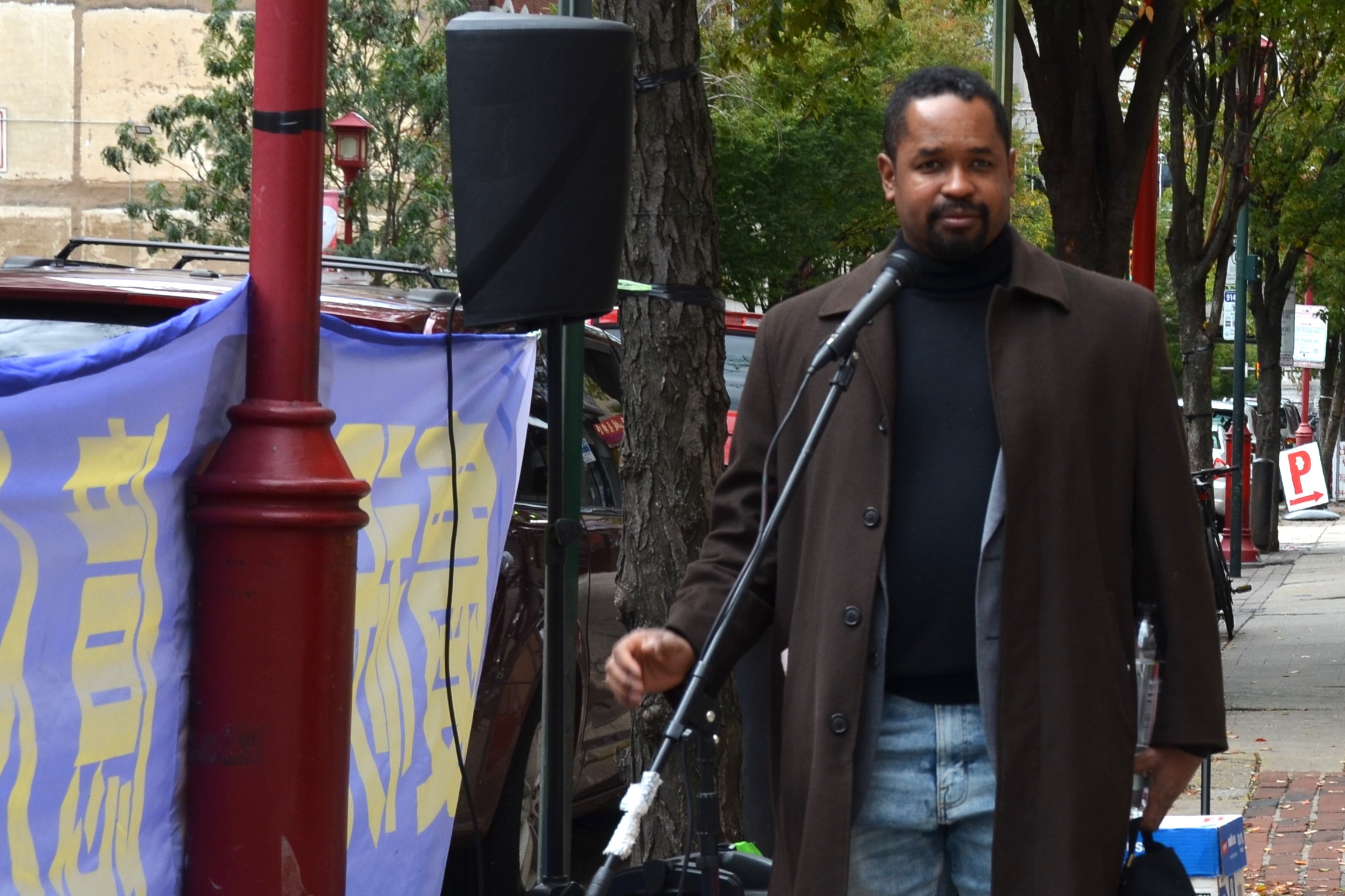 宾州州参议员谢里夫・斯惴特(Sharif Street)当天来到集会现场。他表示,很高兴看到“有人站出来反对中共的专制,并捍卫自由”。