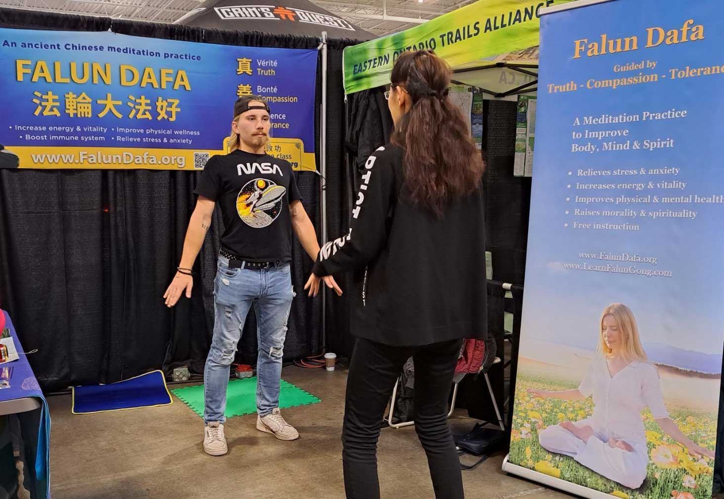 学员接着说,法轮功的自我提升体系中,除了炼功,还要遵守真、善、忍的原则。史蒂夫说,“在这里,我就能感受到真、善、忍的场围绕着展位,所以这个地方让人感到平静、美好。人们能感受到学员的包容和善意,我认为所有人都应该来学。”