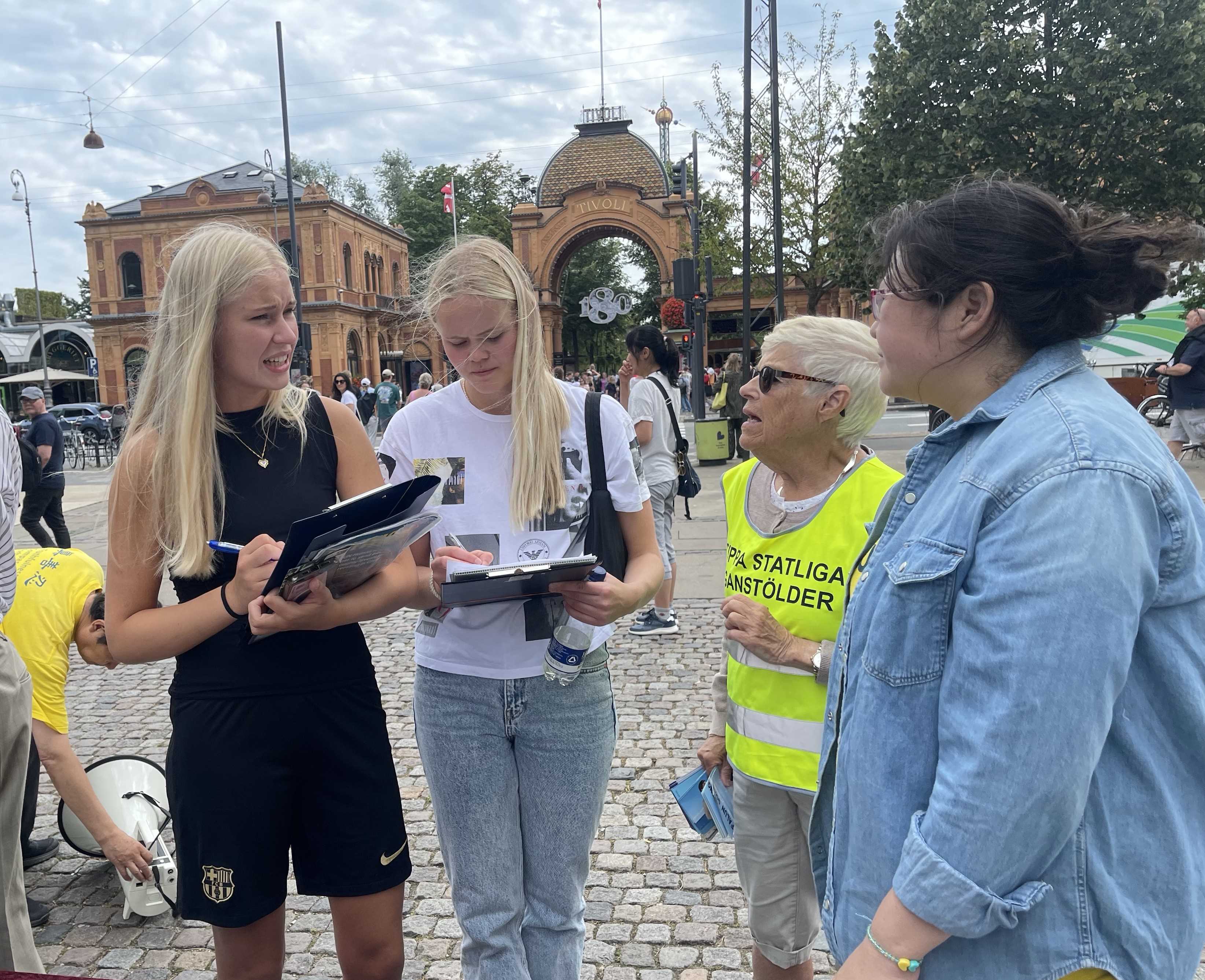 另一对华人青年男女路过法轮功讲真相的地方。学员告诉他们,咱们中国人皆知“善恶有报”的天理,千万不要别被恶贯满盈的中共欺骗,成为它们的殉葬品。你们都这么年轻,都想为自己、为家人拼搏奋斗,希望有幸福的生活和前途。听得这些后,一直沉默的二人放松了表情,年轻女士笑着说,其实他们姐弟俩和父母一起来丹麦旅游前,已在法国、英国的景点看到过法轮功学员。以前觉得自己早已过了退团年龄,但今天听到中共杀了那么多无辜的好人,还活摘器官,真是太邪恶了。他们从心里愿意退出中共团、队。
