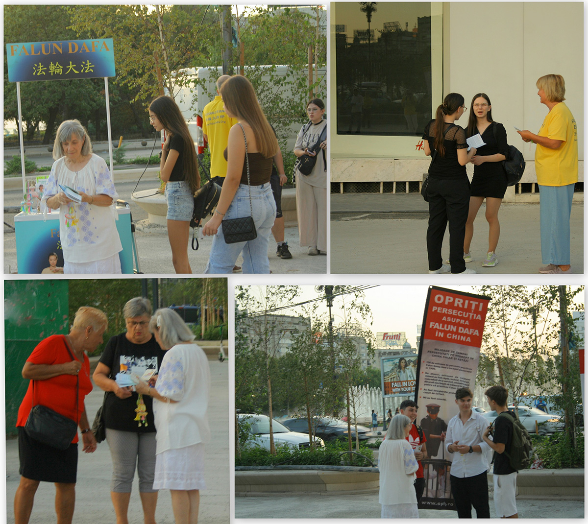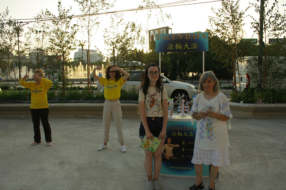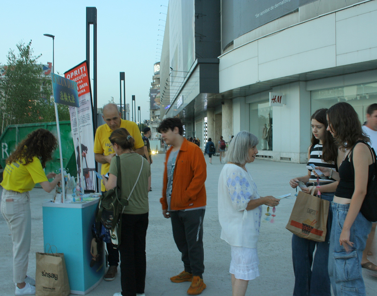 在布加勒斯特的统一广场,很多路人来向学员们询问更多信息。尽管年龄和生活背景不同,但他们得知迫害法轮功真相后,都纷纷表示:一个国家竟然迫害那些按照真、善、忍做好人的人,这实在令人震惊。