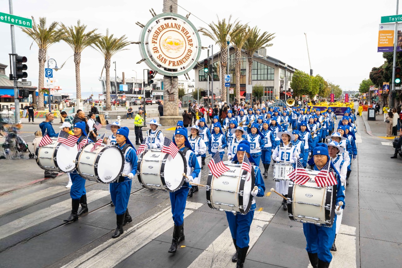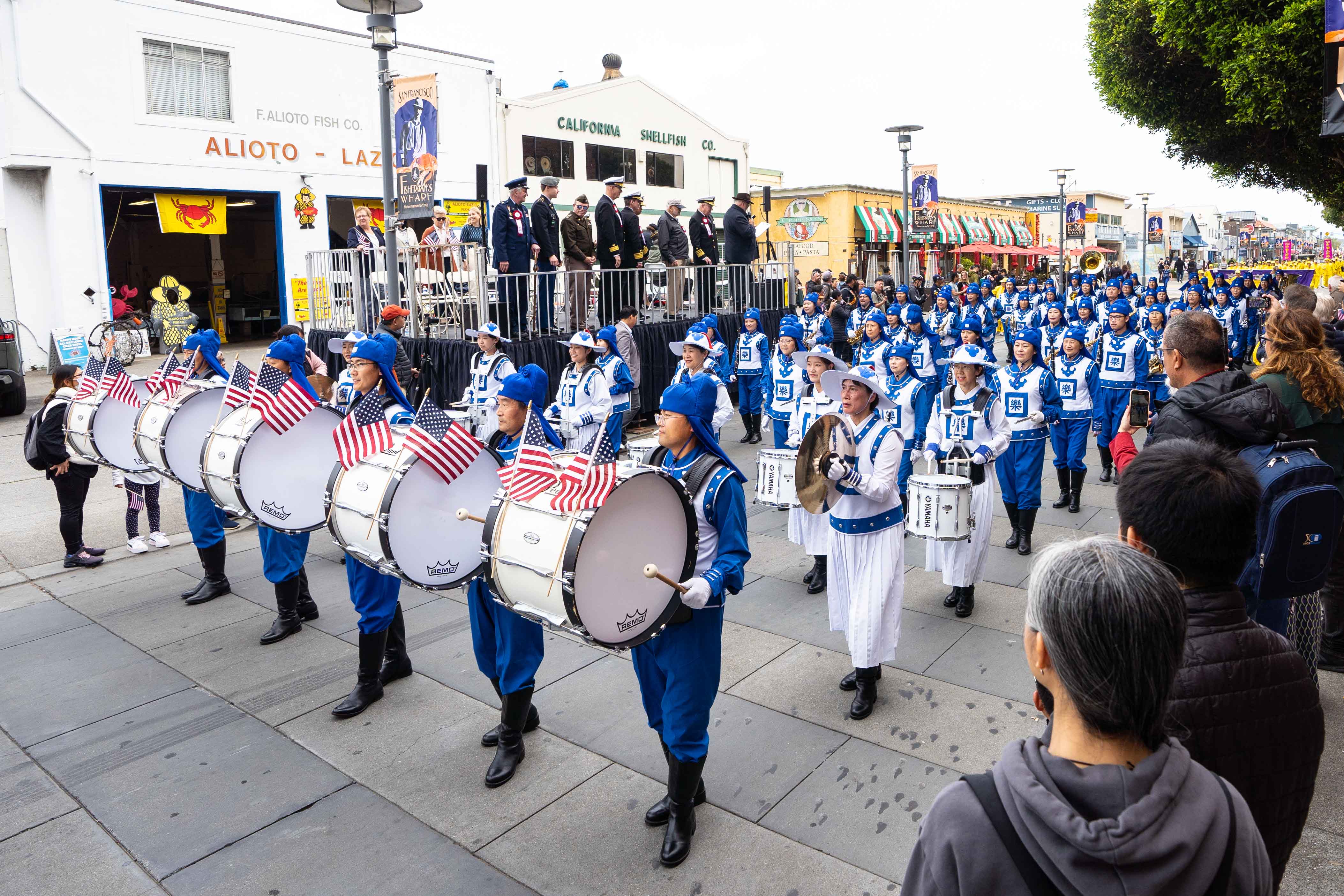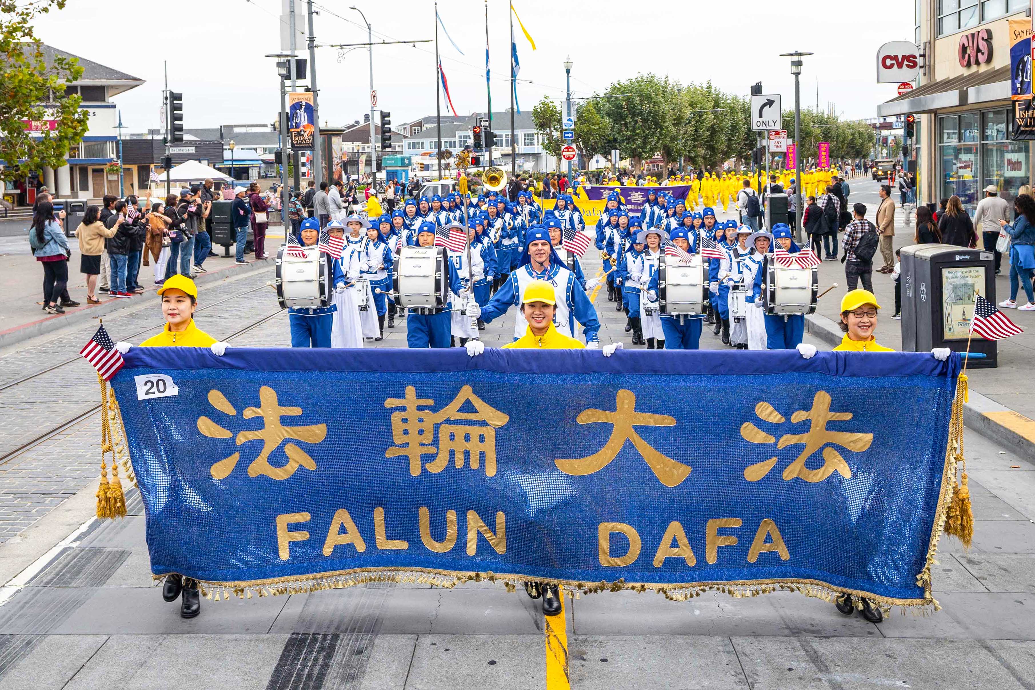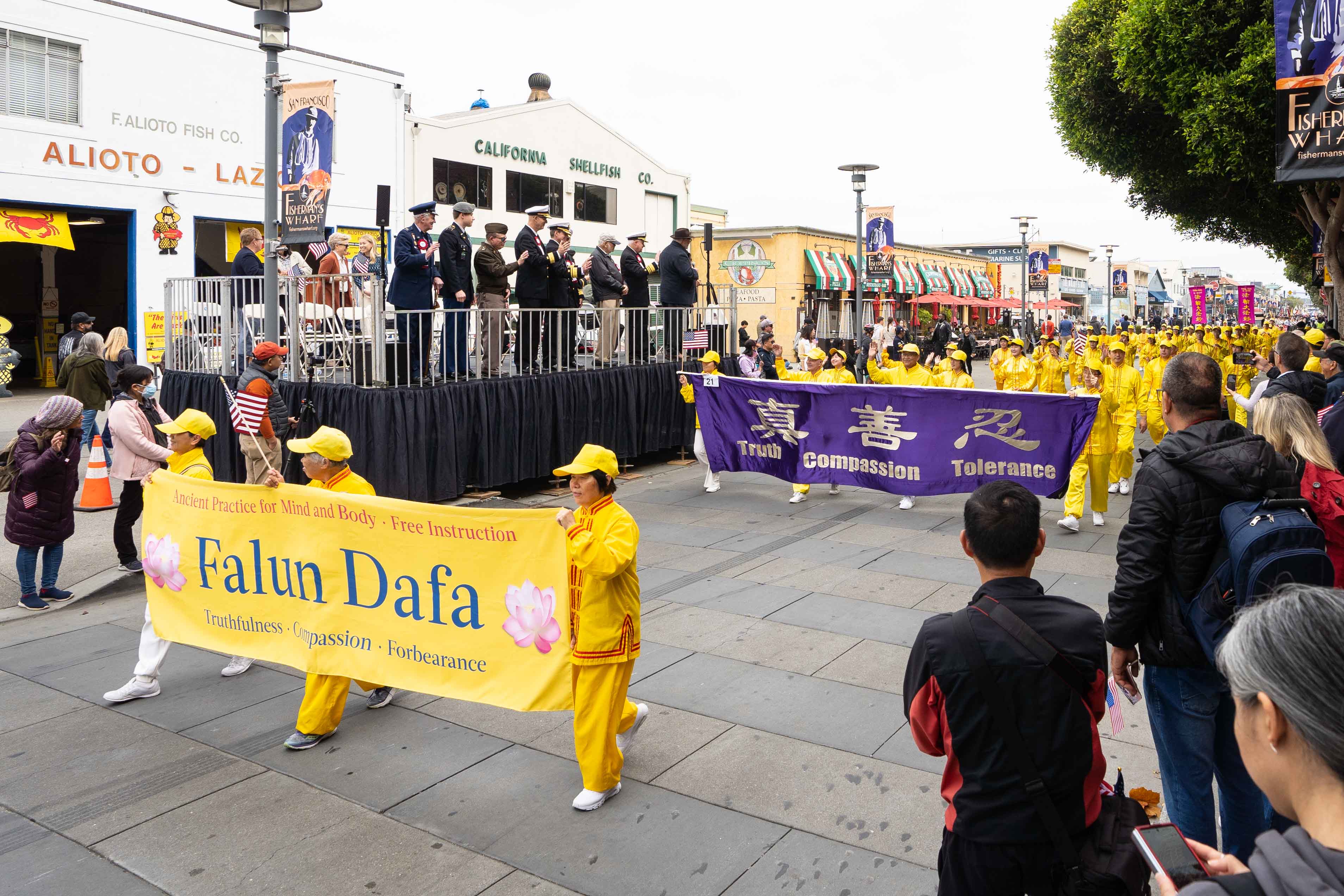 法轮功学员的队伍由美西天国乐团和炼功队组成。天国乐团为观众带来了《法轮大法好》和《美国国歌》等乐曲,受到观众的欢迎。有的观众看到法轮功学员的队伍热烈的鼓掌;有的挥手致意;有的随着天国乐团演奏的乐曲歌唱。美国军人听到天国乐团演奏的《美国国歌》时,伫立并行军礼。