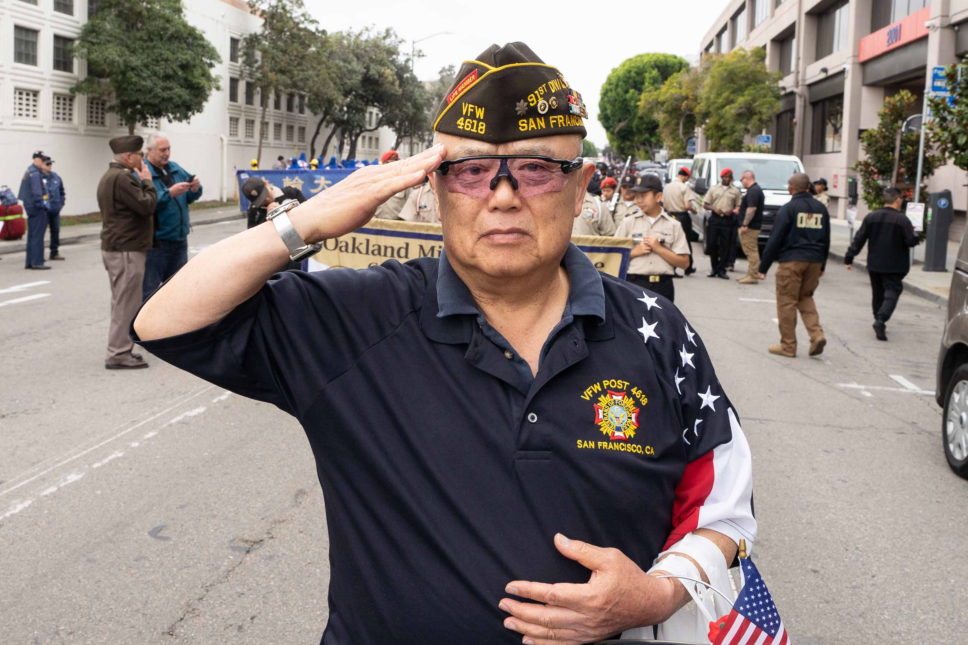 越战老兵比尔·郑(Bill Jeng)听到天国乐团演奏的《美国国歌》时,朝着天国乐团的方向行军礼。他表示,天国乐团演奏的《美国国歌》非常好听。