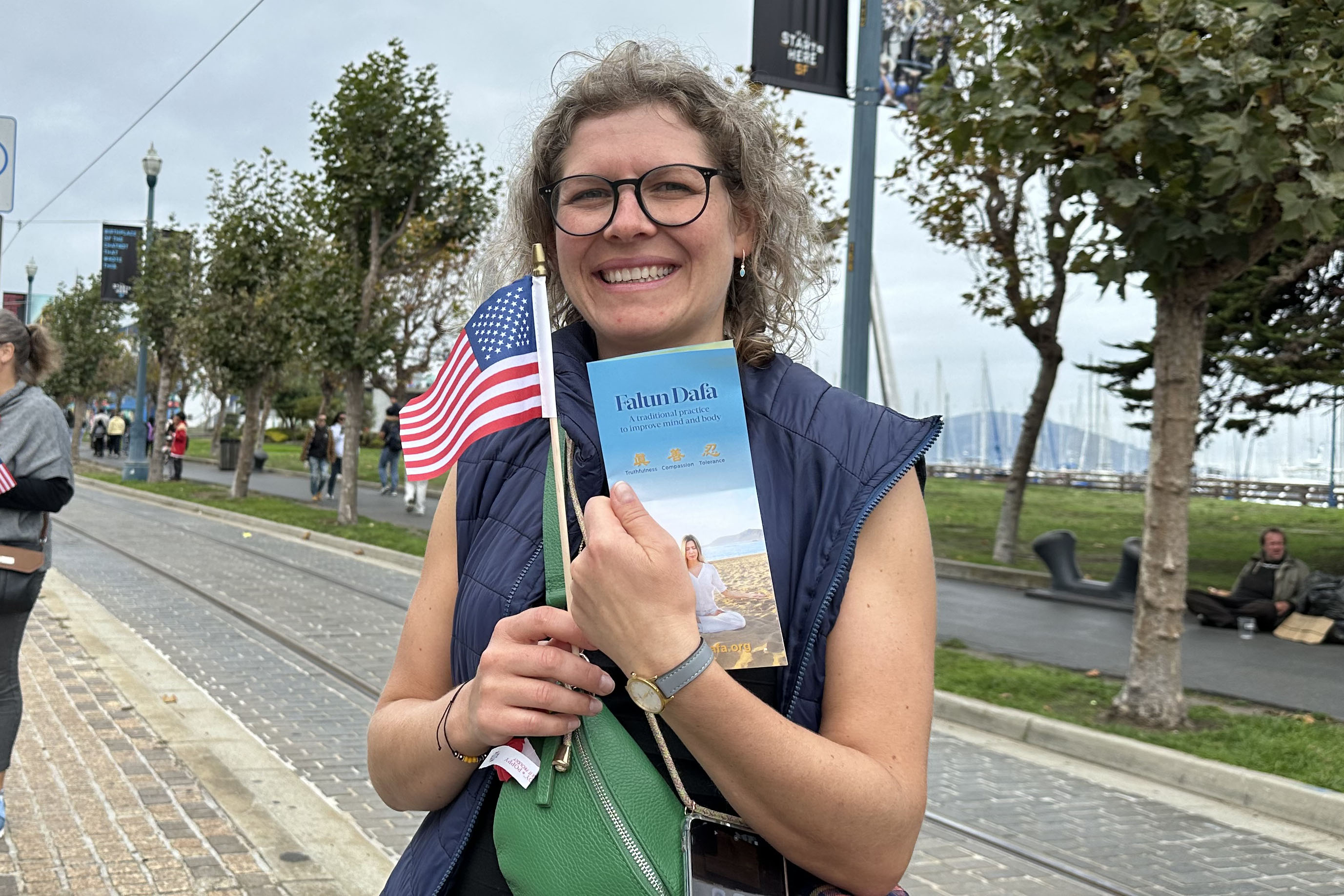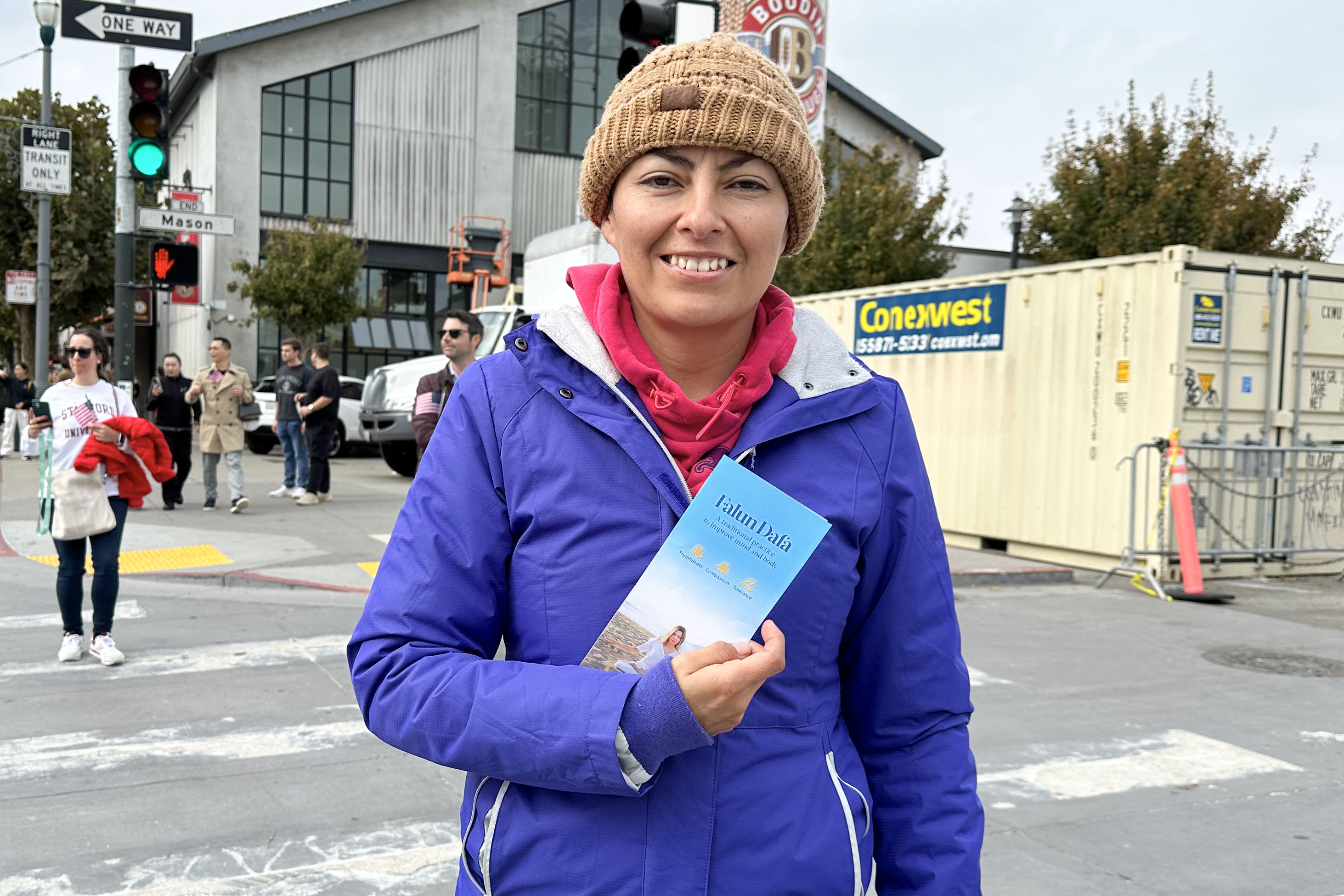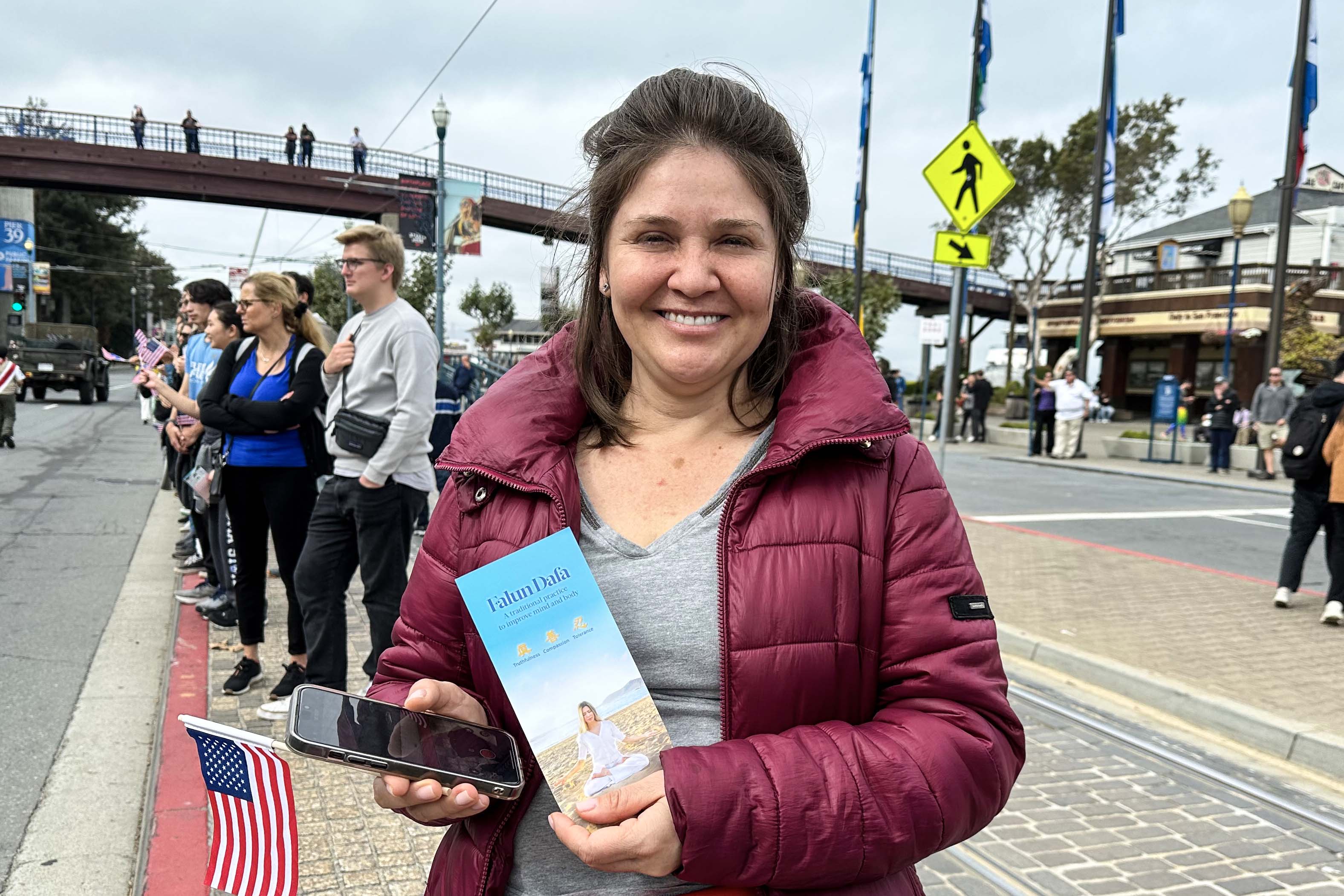 从事服务行业的湾区居民亚历杭德拉(Alejndra)也很高兴看到法轮功学员的炼功队,她说,“他们看起来非常平和、宁静、愉快,正念很强。”“真、善、忍原则很好,我们都应该遵循这个原则,这样世界就会变得更好。”