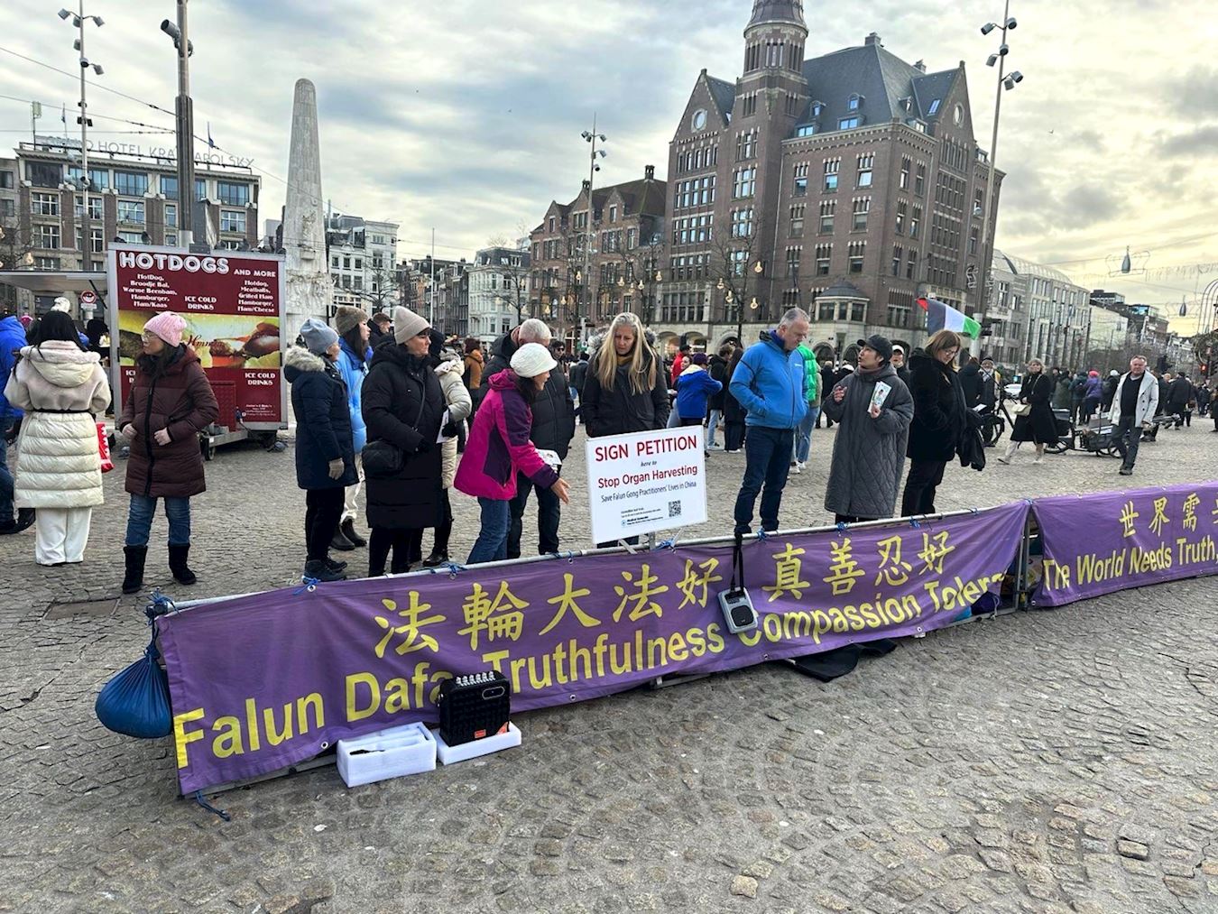 水坝广场是阿姆斯特丹的中心广场,附近有荷兰皇宫、新教堂及国家纪念碑等多座地标建筑。学员们在人行道旁设立真相展位,向路人讲述中共二十四年来对法轮功学员的迫害,呼吁各界人士关注发生在中国的人权灾难。