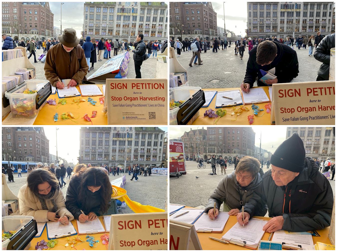 许多路人驻足聆听,并在制止中共迫害的请愿书上签名声援世界各地的学员,同时要求荷兰政府谴责中共活摘法轮功学员器官的罪行。