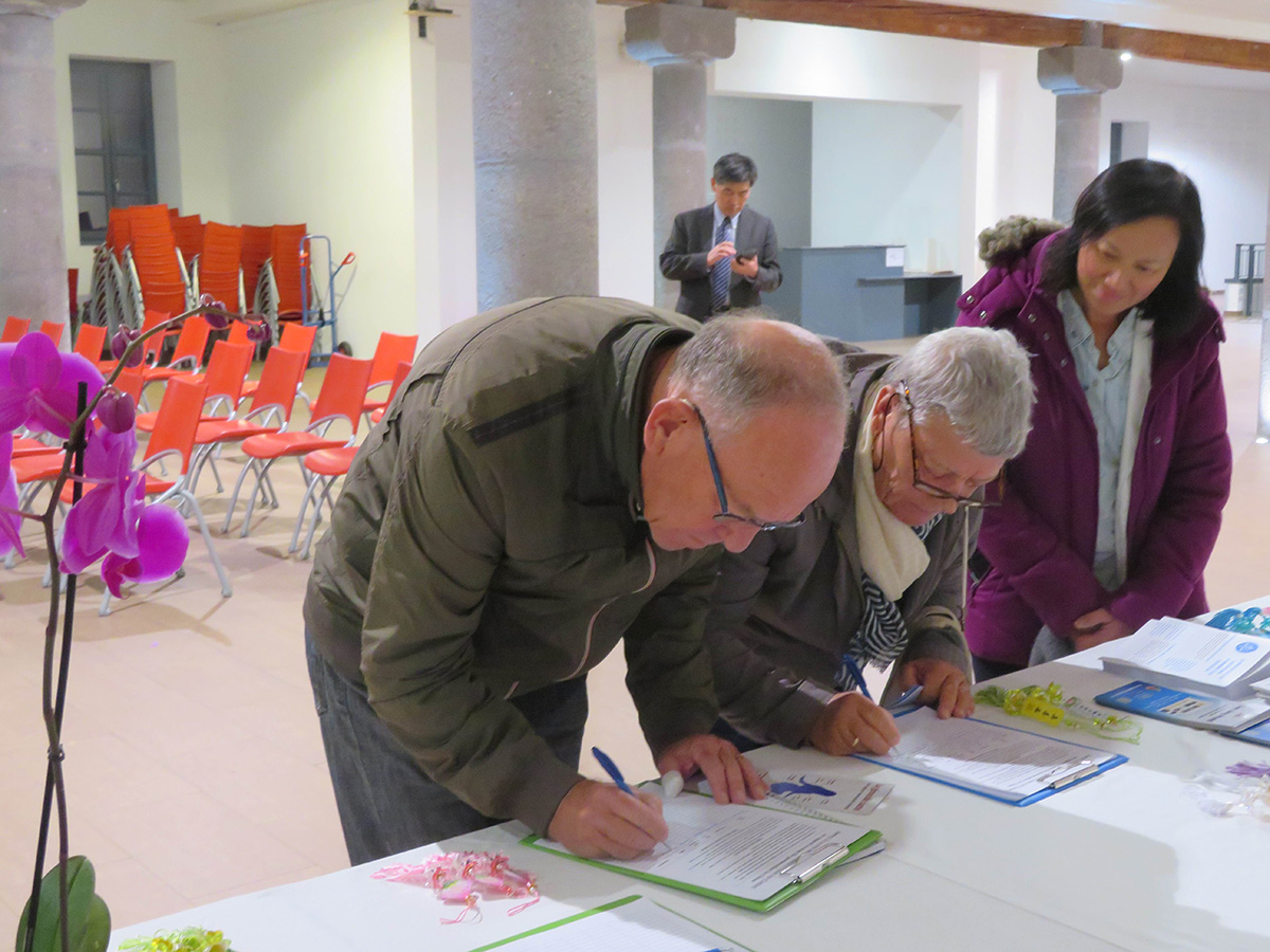会上,法轮功学员介绍了什么是法轮功,告诉与会者法轮功弘传世界一百多个国家,唯独在中国被禁止。法轮功主要著作《转法轮》被翻译成四十多种语言。同时,多位法轮功学员讲述了亲身遭受的酷刑折磨,国内父母因修炼被关押的经历。参加会议、了解了真相的居民在征签表上签字,支持法轮功学员反迫害。