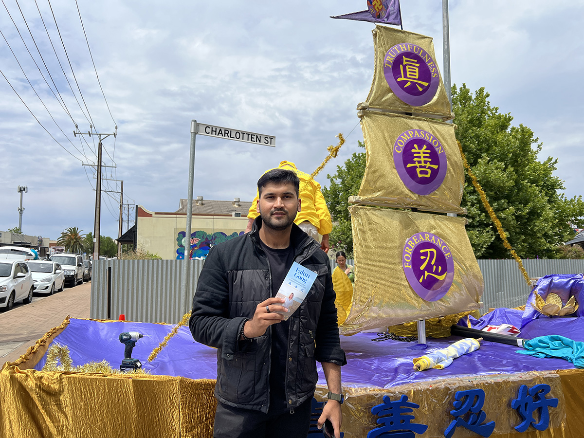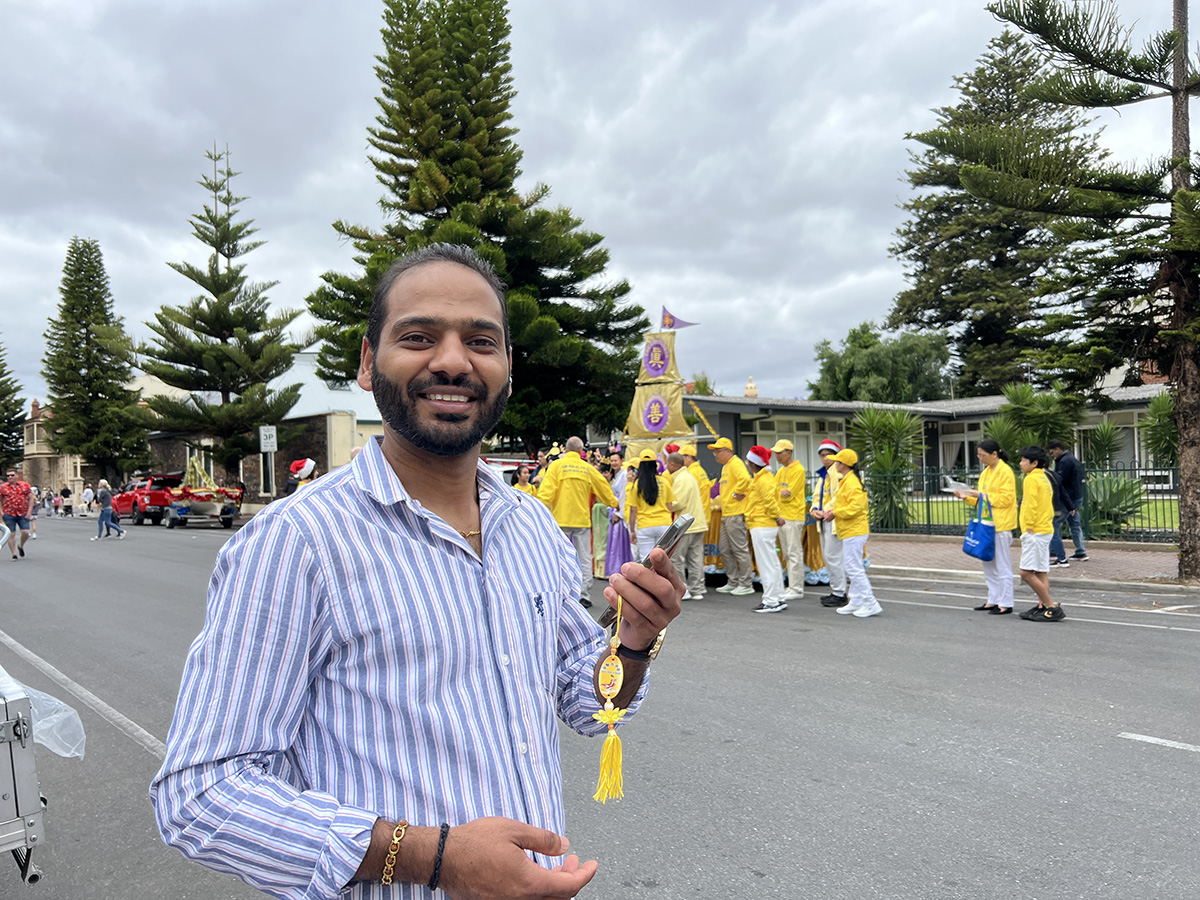 市民苏拉夫(Sourv)很高兴地用中文向学员问好。他表示喜欢学员们的古典服装,“很高兴在游行中看到你们,很好地代表了你们的文化。”