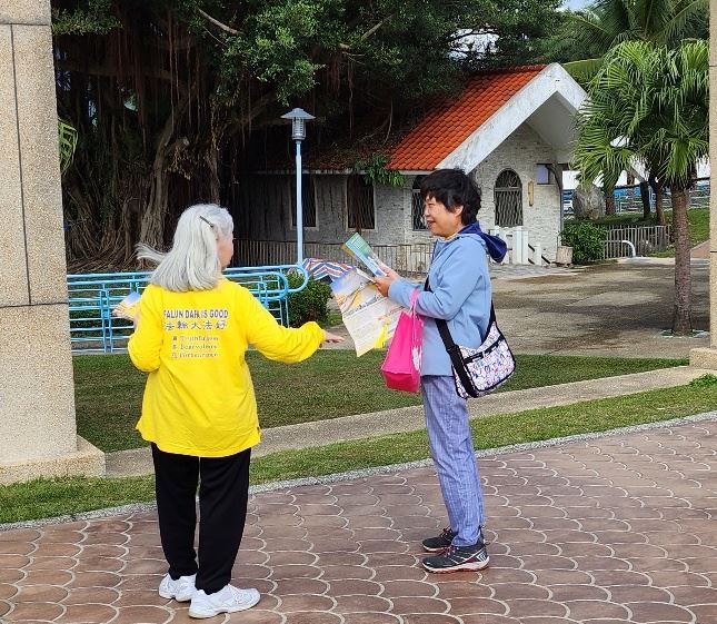 ![]() 图3:法轮功学员向台湾民众讲真相。 |