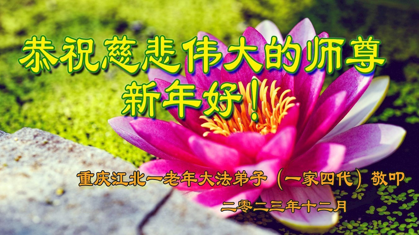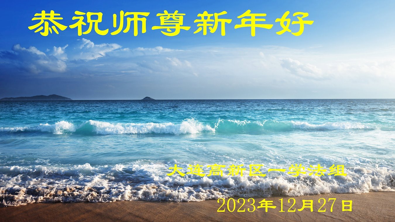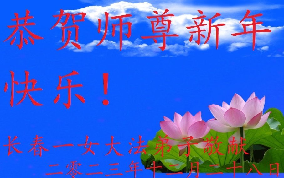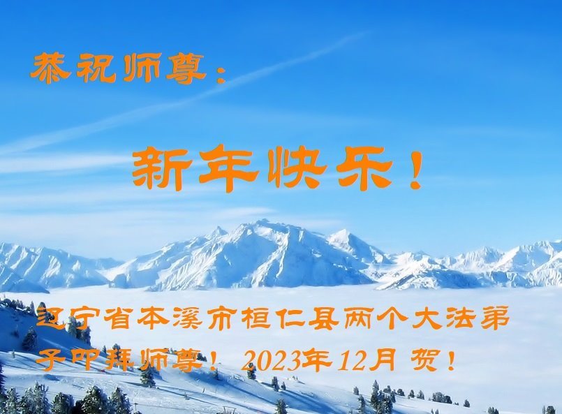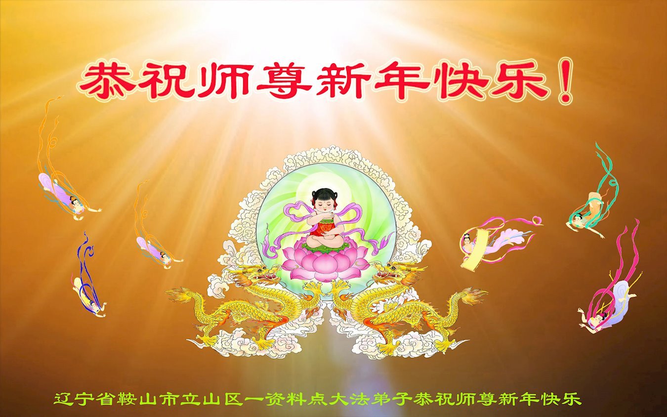 新年即将到来之际,辽宁省鞍山市一资料点全体大法弟子恭祝师父新年好!弟子们感恩师尊慈悲救度,保护弟子们平安走过纷乱不安的二零二三年。师尊为弟子们、为众生的巨大付出与承受,弟子用尽语言也无法表达对师尊浩荡洪恩的感激!唯有精進、听师尊的话、做好三件事,踏踏实实的修炼,坚修法轮大法到底,完成自己的神圣使命,圆满随师还!