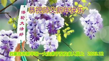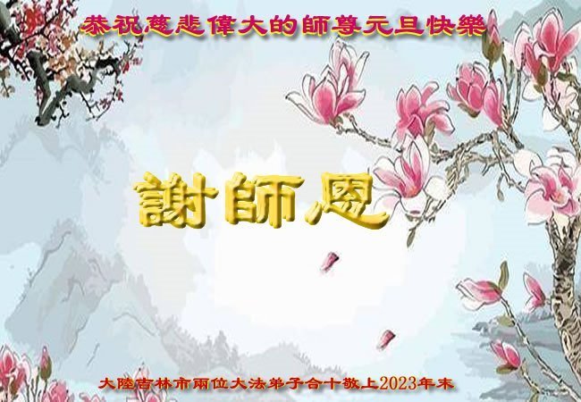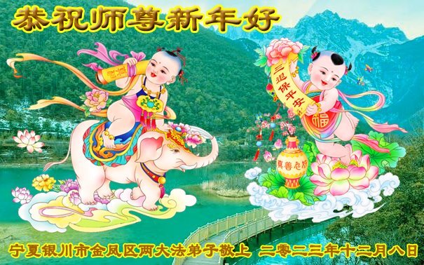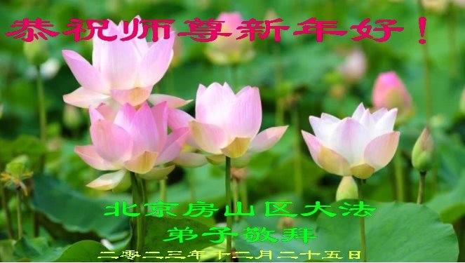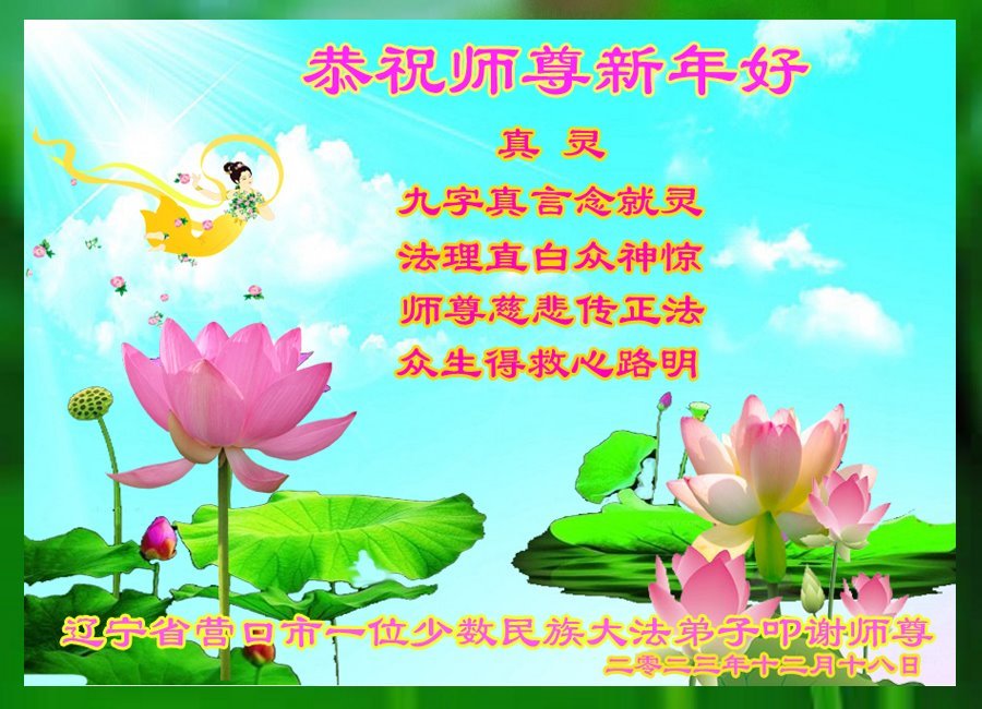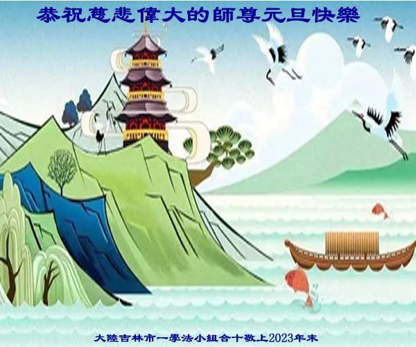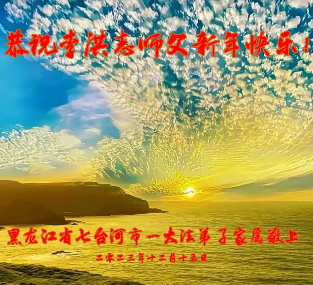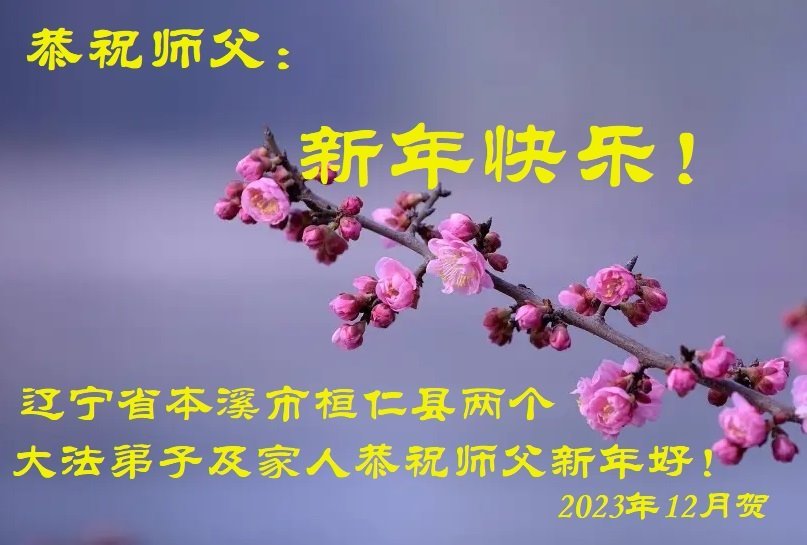 新年即将到来之际,辽宁省鞍山市一资料点全体大法弟子恭祝师父新年好!弟子们感恩师尊慈悲救度,保护弟子们平安走过纷乱不安的二零二三年。师尊为弟子们、为众生的巨大付出与承受,弟子用尽语言也无法表达对师尊浩荡洪恩的感激!唯有精進、听师尊的话、做好三件事,踏踏实实的修炼,坚修法轮大法到底,完成自己的神圣使命,圆满随师还!