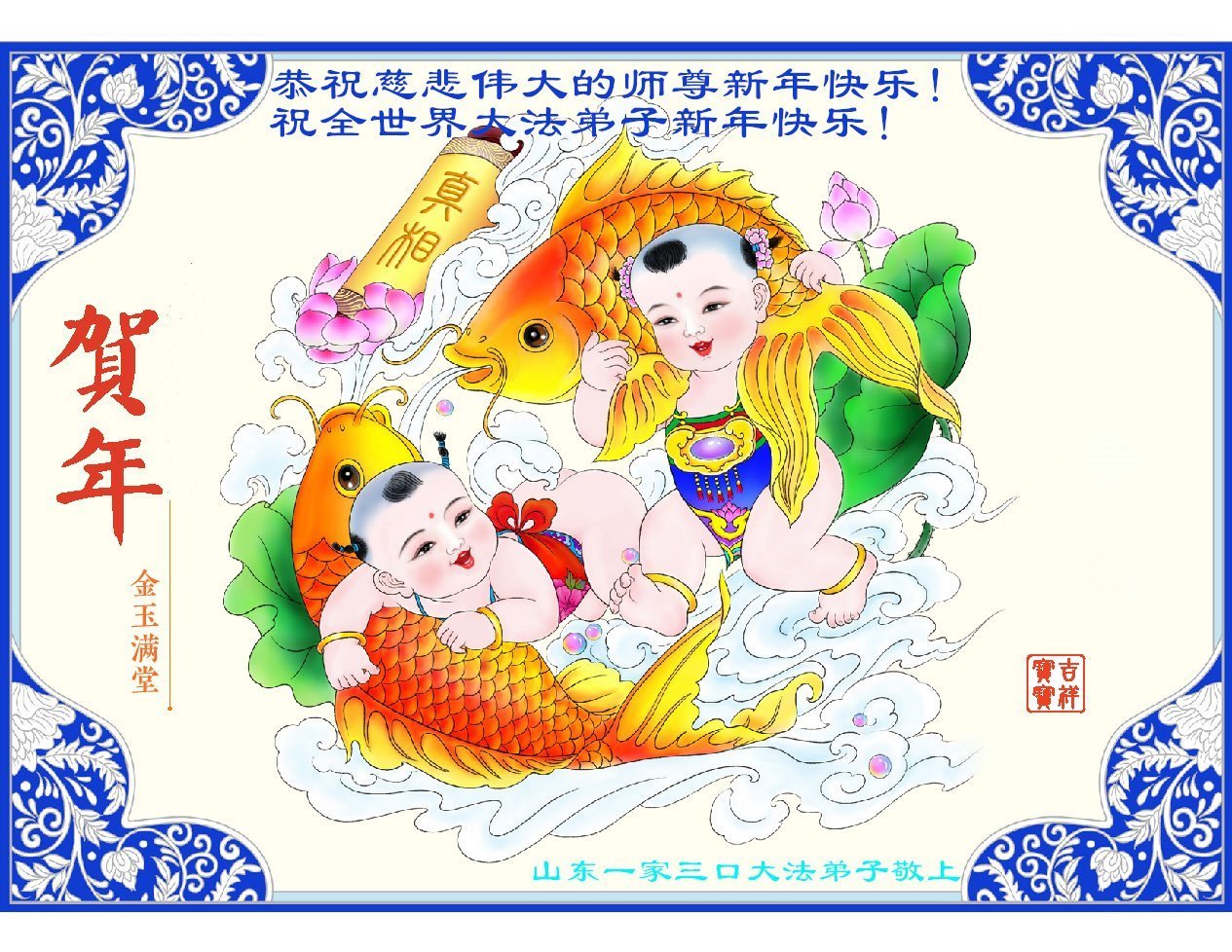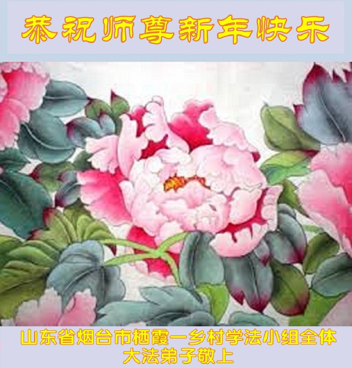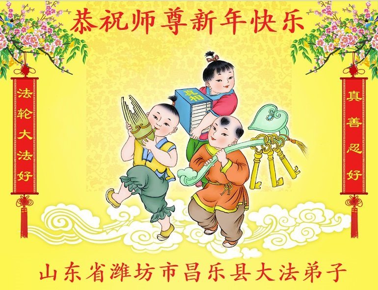 山东一家庭资料点的大法弟子给师父拜年,祝师尊新年快乐!我们一定配合好,做出精美的真相资料,让更多的有缘人明真相,得救度!弟子深知在师尊的保护下,我们家庭资料点多年来得以平稳的运转着,感恩师尊的慈悲保护与救度!