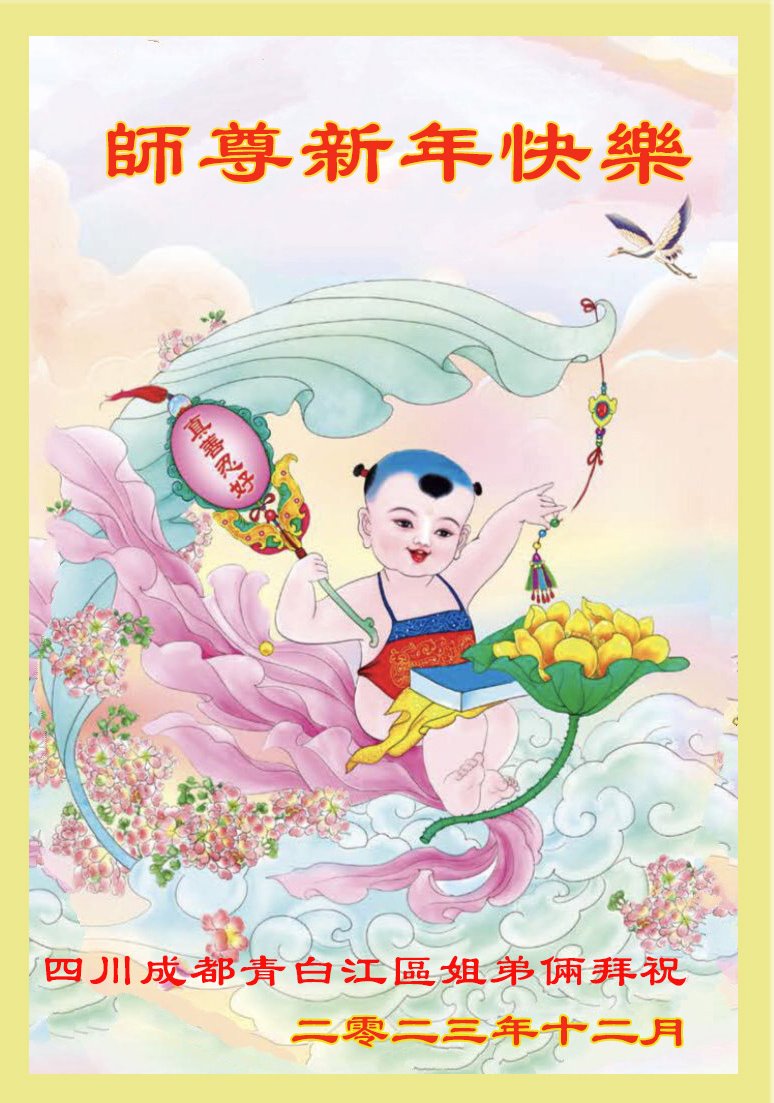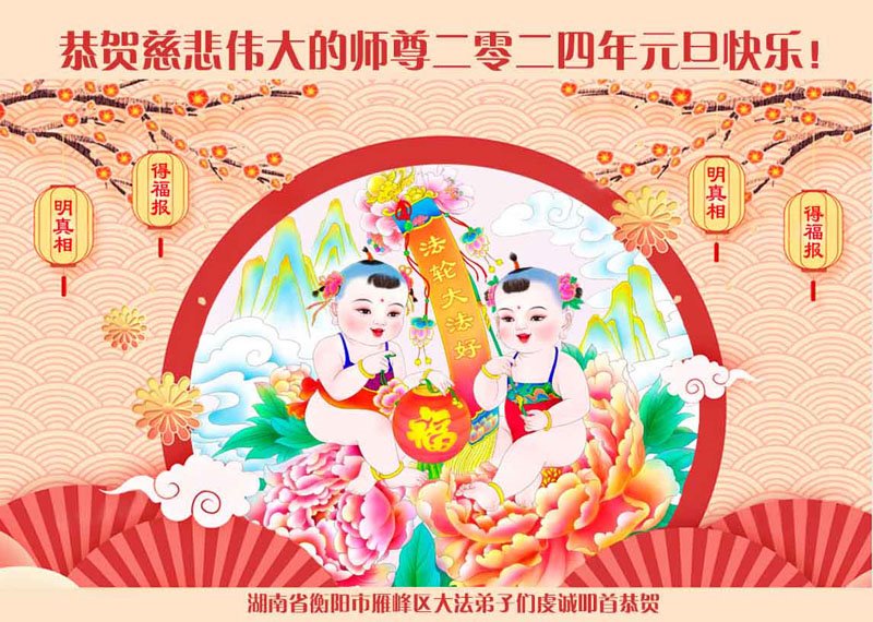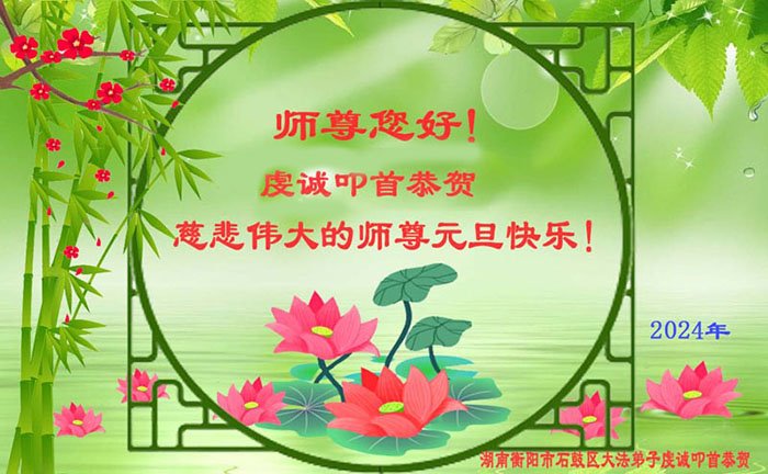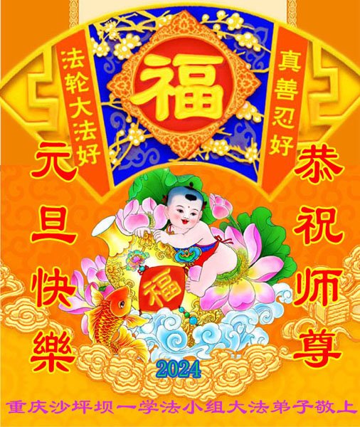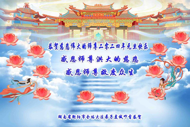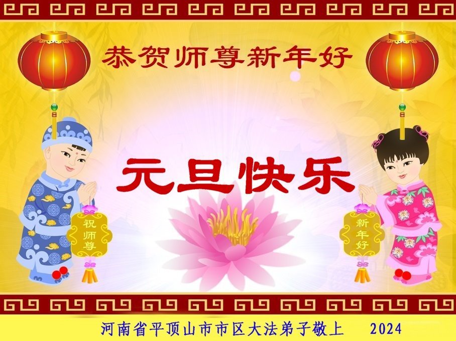 2024年元旦即将到来,弟子们怀着无比感恩的心,恭祝师父新年快乐!在新的一年里,弟子们要更加努力做好三件事,在做好上下功夫。学好法、发好正念、讲好真相,多救人。向内找,修心性,不断的锤炼、修正自己。走好走正修炼的路,兑现誓约,以报师恩!