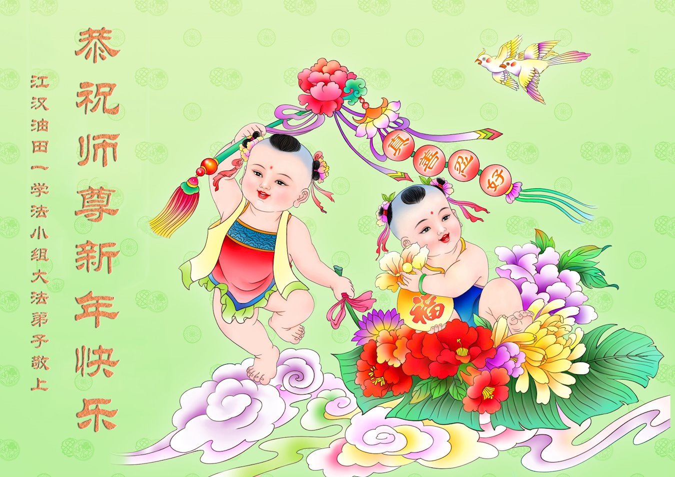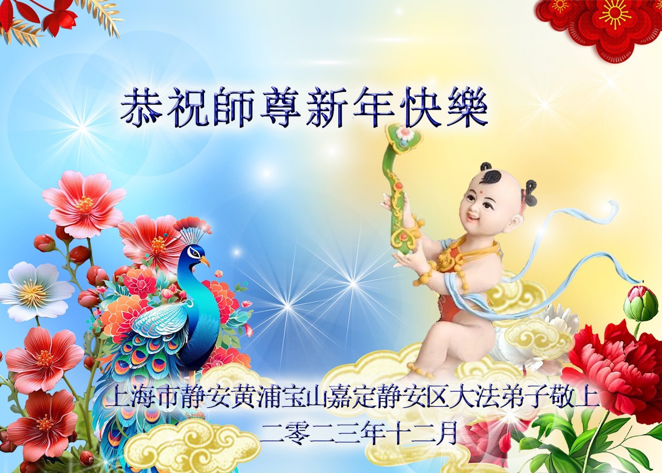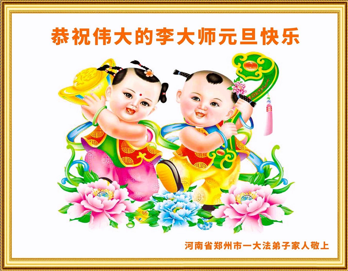 2024年元旦即将到来,弟子们怀着无比感恩的心,恭祝师父新年快乐!在新的一年里,弟子们要更加努力做好三件事,在做好上下功夫。学好法、发好正念、讲好真相,多救人。向内找,修心性,不断的锤炼、修正自己。走好走正修炼的路,兑现誓约,以报师恩!