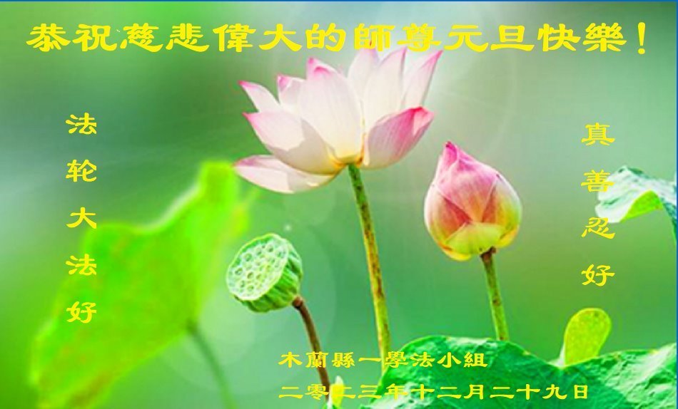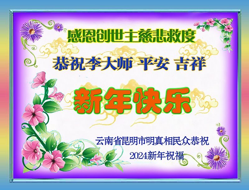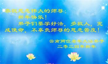 【明慧网二零二三年十二月三十一日】(明慧网记者综合报道)时光飞逝,岁月如梭,转眼即到了2024年。中国各省市、自治区的大法弟子,在各行业工作的新、老学员,遍及城市乡村、坚持以各种方式向民众传播真相的大法弟子们恭祝师尊元旦快乐!