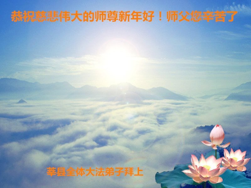 祝师父新年好!在所剩不多的时间里,多学法、修好自己,整体配合多救人。兑现誓约,惟愿师尊笑!