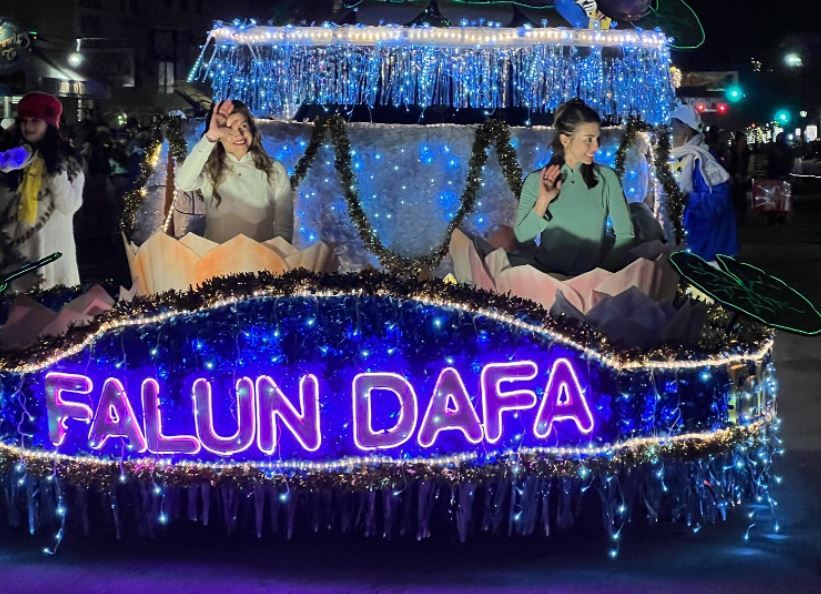 据科罗拉多州杜兰戈地区的法轮功学员介绍,他们联系了临近加利福尼亚州学员并得到了他们的帮助。来自南加州的学员们制作好手工莲花花车,并第一次在寒冷的低温下,又是夜间,保证了花车顺利地参加了游行。除了花车,法轮功学员还展示了五套功法,并向观众派发传单和莲花。