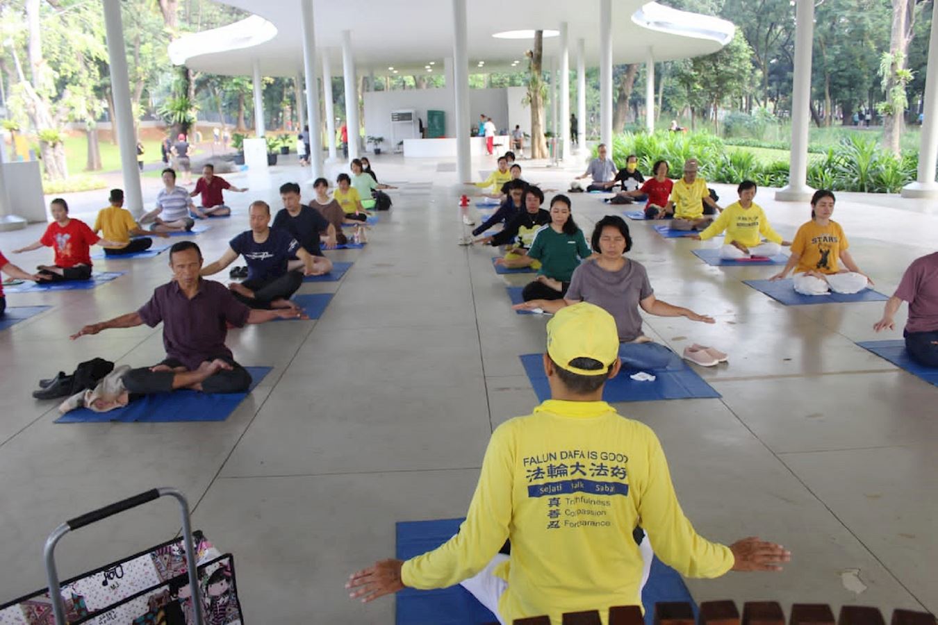 ![]() 图1:二零二三年三月二十二日,雅加达法轮功学员在德贝特绿色公园(Tebet Eco Park)集体炼功、弘法。 |