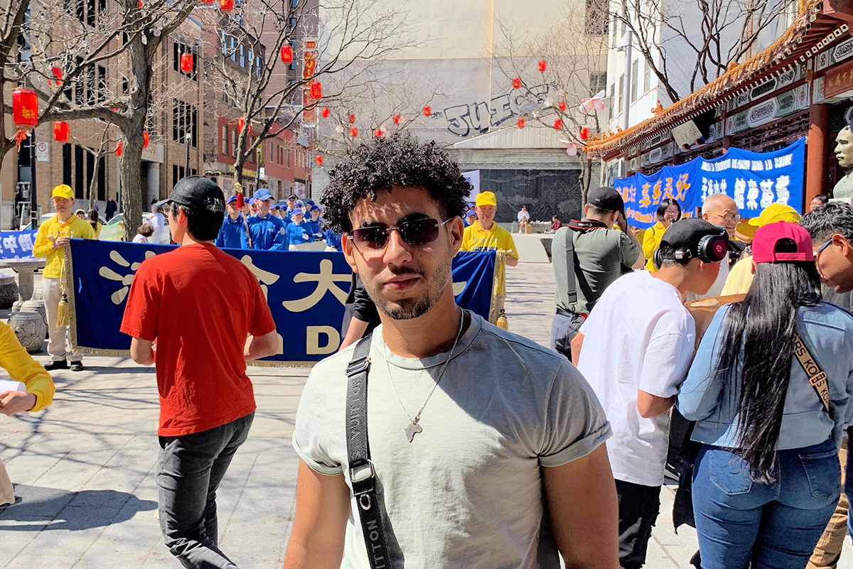 柯莫罗(Yaya Komoro)是麦吉尔大学(McGill University)的国际留学生。这是他第一次看到法轮功学员的活动,他说:“这个团体非常勇敢,令人尊敬,我们支持他们,和他们站在一起。”