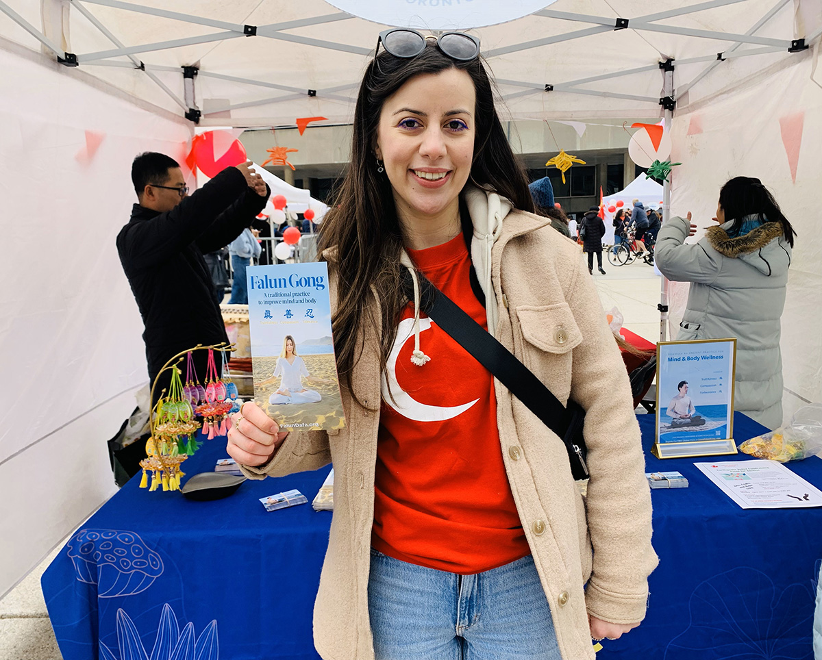 居住在阿拉米达县的伊莲达(Yillanda)看到真相传单上法轮功学员打坐的图片,非常兴奋,“太棒了,这种祥和平静的感觉,就是我一直在寻找的,在哪里可以学?”