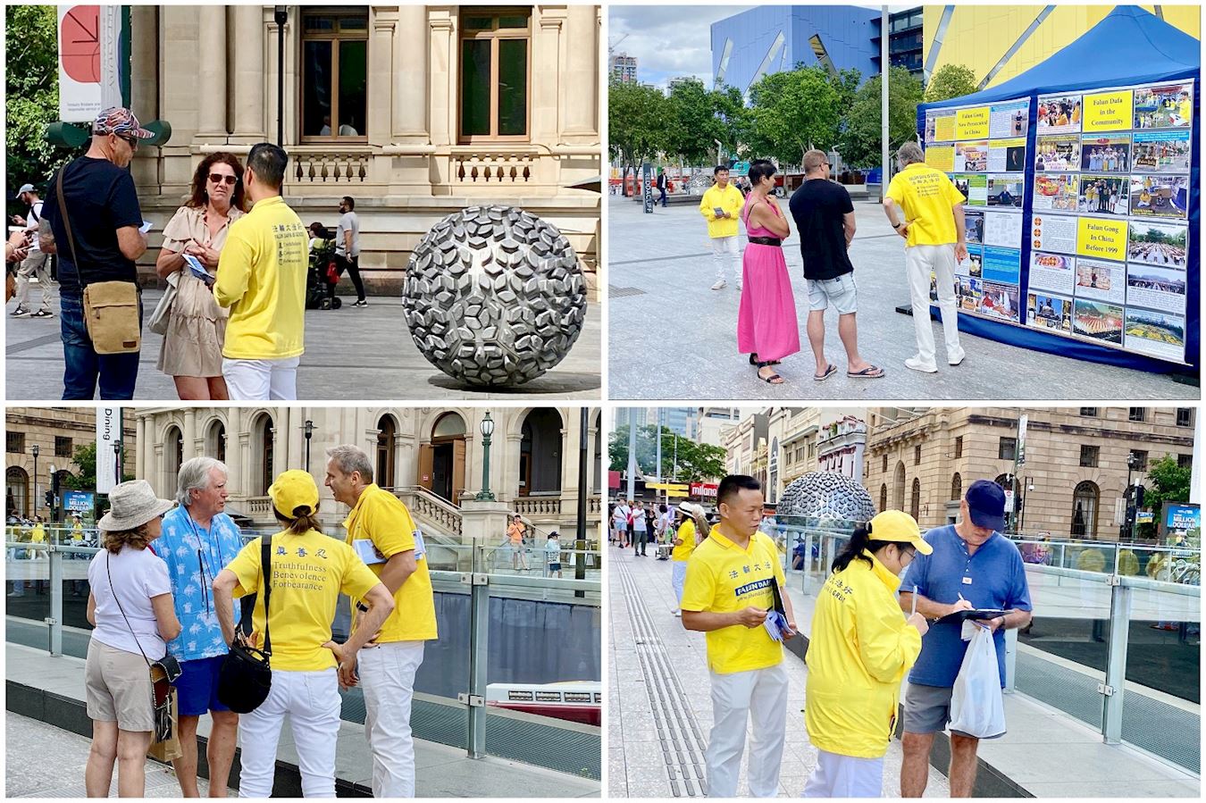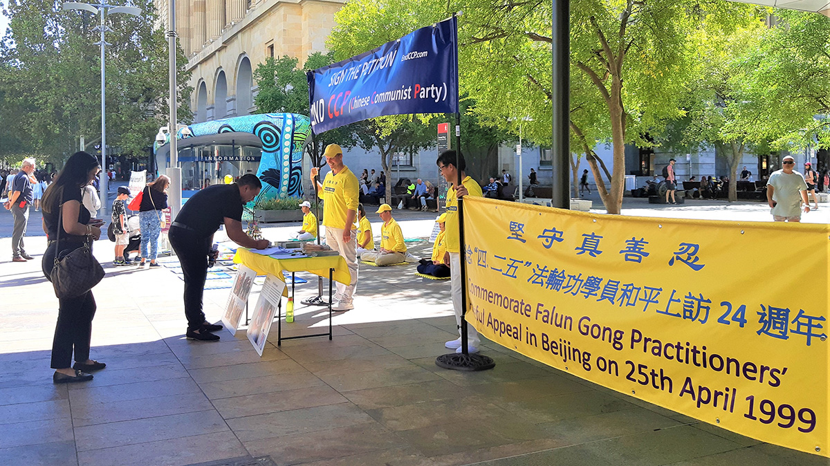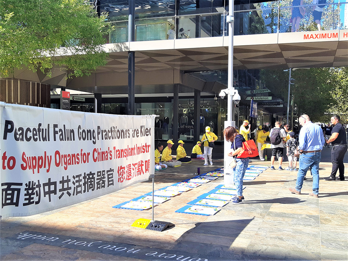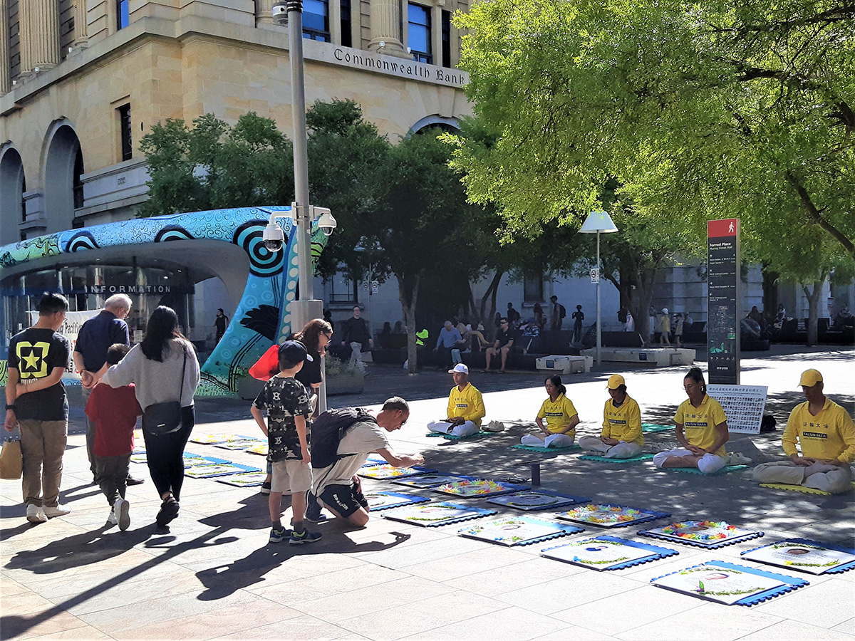 活动中,法轮功学员宁静祥和、打坐炼功的场面吸引了民众前来了解真相,当民众了解到中共迫害修炼真、善、忍的法轮功学员,甚至活体摘取器官时,纷纷签名表示支持法轮功反迫害。澳洲民众表示:“感谢法轮功学员传真相,我100%支持法轮功学员反迫害。”