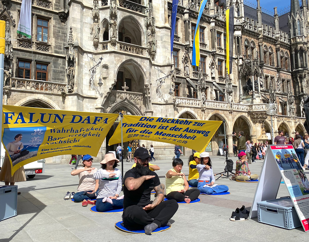 二零二三年四月二十三日,波兰及乌克兰法轮功学员在华沙中使馆前静坐及在繁华的古城中讲真相、征签、介绍法轮功功法,以此纪念“四·二五”中国法轮功学员万人和平上访二十四周年。